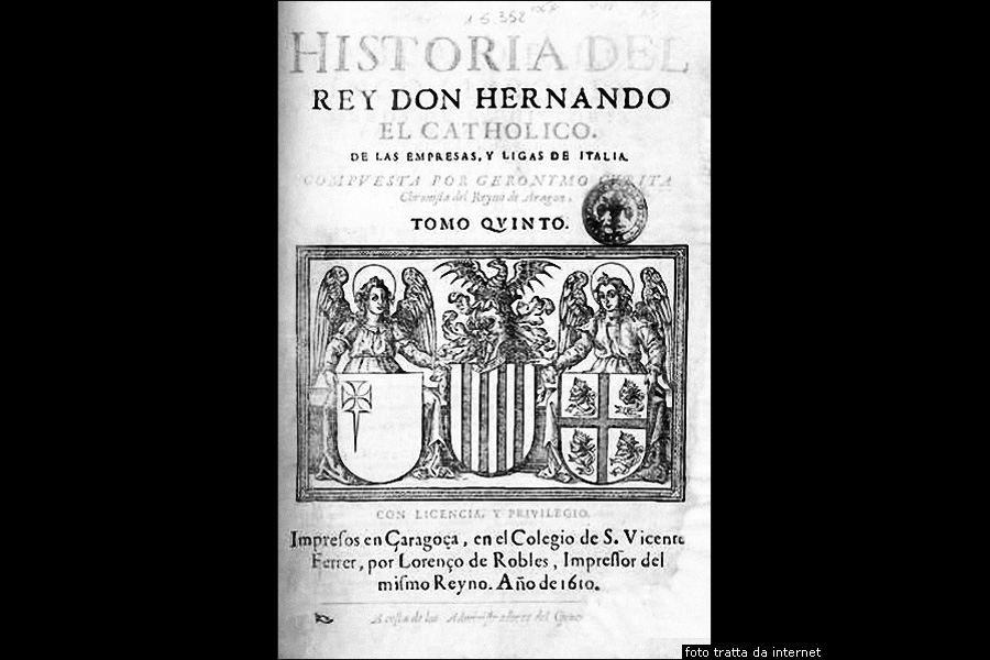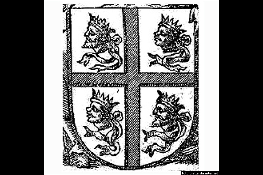 Le principali attestazioni del simbolo in SardegnaLa benda sulla fronte dei quattro Mori si è iniziata a trovare nelle riproduzioni a partire dal Quattrocento, quando compare contemporaneamente alla leggenda della battaglia di alcoraz con l’intervento da parte di San Giorgio. Con la conquista aragonese e successivamente spagnola dell’Isola, i ricordi delle lunghe guerre contro il Giudicato di Arborea va scemando, dato che, col passare delle generazioni, i conquistatori si inseriscono all’interno della società sarda divenendone parte integrante. E quindi a fine Quattrocento, con Carlo I di Spagna Sul cui Regno non tramonta mai il sole, l’inserimento in un’organizzazione politica in cui non solo la Sardegna, ma anche l’Aragona e la Catalogna, sono solo piccole componenti, fanno sì che si rinvigorisca il senso di appartenenza a quella Regione che è rappresentata dai quattro Mori. Ma l’Iconografia del simbolo varia in questi secoli. Le teste dei Mori sono rappresentate rivolte a destra, o a sinistra, o affrontate. Sono a volte scoperte, a volte coronate, o cinte da una benda sulla fronte. L’orientamento varia, ma il viso è prevalentemente rivolto a sinistra. Con il passare del tempo, la bandiera con il simbolo dei quattro Mori si impone, quindi, in Sardegna, venendo a sostituire il simbolo dei Sardi che combattevano contro l’invasione catalano aragonese, che era il Desdichado, ossia l’albero sradicato, presente nella bandiera del Giudicato d’Arborea. In Sardegna e su documenti sardi, la prima sicura attestazione dello stemma con i quattro Mori si trova sul frontespizio degli atti del Braccio Militare del Parlamento sardo, i cosiddetti Capitols de Cort del Stament Militar de Sardenya, ossia Capitolo di Corte degli Stamenti Militari di Sardegna.  Gli atti vengono stampati nel 1572 a Cagliari, nella tipografia di Vicens Sembenino, curati da Francisco Bellit, il più antico raccoglitore di leggi sarde, e lo sono sotto forma di una cinquecentina, ossia di un libro scritto con la tecnica della stampa a caratteri mobili, ossia di un’opera a stampa di un’arte tipografica non ancora matura. In esso i quattro Mori vengono rappresentati rivolti con il viso verso la destra di chi guarda, ed hanno le bende poste sulla fronte. La rappresntazione dei quattro Mori cambia, nella riedizione aggiornata dei quest’opera, pubblicata nel 1591 a Cagliari, nella tipografia Galcerino, curati da Pere Joan Arquer. In essa è presente uno scudo di forma ovale, sormontato da una corona marchionale, suddiviso da una croce piana in quattro cantoni, nei cui angoli sono raffigurate quattro teste di Moro di profilo, rivolte a sinistra di chi guarda. Le teste sono cinte sulla fronte da una benda legata agli occipiti, gli occhi sono liberi e non bendati.  Sul frontespizio degli AnnAles de la Corona de Aragòn, gli Annali della Corona d’Aragona, redatti dal 1562 al 1580 da Jeronimo Zurita y Castro e pubblicati nel 1610, che raccontano le vicende del Regno d’Aragona in ordine cronologico, dal periodo islamico fino al Regno di Ferdinando il Cattolico, sono presenti, affiancati, i tre stemmi della Corona: la croce patente identificativa dell’Aragona, i quattro pali della Catalogna, ed i quattro Mori rappresentativi della Sardegna. I mori, che nelle rappresentazioni sono generalmente tutti uguali, nel frontespizio degli AnnAles sono diversi: due mori appaiono più anziani, barbuti e con la Corona reale metallica, alternativa rispetto alla benda sulla fronte, mentre gli altri due sono più giovani, sbarbati e con la corona principesca in testa.  L’orientamento dei visi dei quattro Mori varia nelle diverse rapprsentazioni, ma il loro viso è prevalentemente rivolto verso la sinistra di chi lo guarda. Significativo è però, a questo riguardo, il manoscritto redatto nel 1631 dal giurato Francisco Carmona, che si definiva dottore e da alcuni veniva considerato un religioso, ipotesi questa che è stata però quasi completamente smentita, e la cui opera si inserisce perfettamente nel clima religioso della Sardegna dei primi del seicento. E, sul frontespizio del manoscritto, che è conservato nella Biblioteca Universitaria di Cagliari e viene denominato alabanças de los Santos de Cerdeña, ossia le lodi dei Santi della Sardegna, sono riprodotti i quattro Mori con i volti rivolti affrontati verso il centro. La monetazione durante il periodo aragonese e spagnoloLo stemma, da allora, viene riprodotto su pubblicazioni ed altro, sulla facciata di edifici, oltre che su monete dell’età spagnola, che sono battute a Cagliari e vengono chiamate pertanto Cagliaresi. La prima moneta da un cagliarese viene emessa dal sovrano Ferdinando di Trastàmara detto Ferdinando il Cattolico, salito al trono come Ferdinando V Re consorte di Castiglia dal 1474 al 1504, e più detto Re d’Aragona, Valencia, Sardegna, Maiorca e titolare di Corsica, conte di Barcellona e delle contee catalane con il titolo di Ferdinando II d’Aragona dal 1479 al 1516. Il cagliarese aveva il valore di due denari, era un composto di argento con un contenuto elevato di metallo non prezioso come il rame, ed aveva il peso di 0,80 grammi. In seguito, nel sedicesimo secolo, gli succede Carlo V d’Asburgo, che nel 1519 diviene Imperatore del Sacro Romano Impero. Egli si trova, all’età di solo sei anni, a essere il potenziale erede oltre che di Castiglia, anche d’Austria e di Borgogna, poi, a sedici anni, eredita anche il trono d’Aragona, concentrando nelle sue mani tutta la Spagna, per cui può fregiarsi del titolo di Re di Spagna a tutti gli effetti, salendo al trono dal 1516 al 1556 con il titolo di Carlo I di Spagna. Da lui vengono emesse monete di rame da un cagliarese. Il simbolo nel periodo del Regno di Sardegna e d’ItaliaCon il trattato di londra ed il successivo trattato dell’Aia, la Sardegna viene assegnata ai Savoia, e nel 1720 i Duca di Savoia all’eterna ricerca di un Regno, riescono ad ottenerlo. Quindi Vittorio Amedeo I