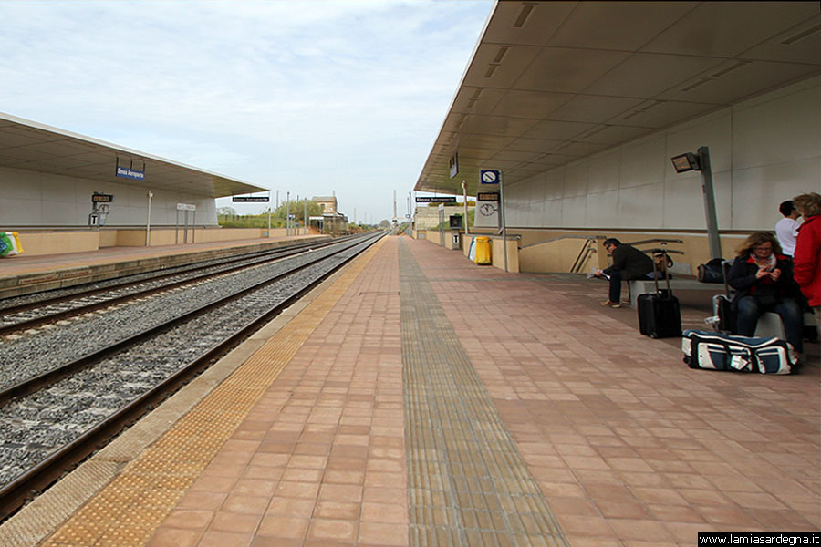 La Stazione ferroviaria di Cagliari ElmasDalla piazza della chiesa, proseguiamo per una ventina di metri lungo la via Sulcitana, e prendiamo a destra la via dell’Arma Azzurra, che si dirige verso sud ovest. La seguiamo per cinquecento metri, fino a dove questa strada termina, e qui prendiamo verso destra la via della Ferrovia, della quale, dopo una cinquantina di metri, vediamo sulla sinistra la piazza della Stazione. In piazza della stazione si trova la Stazione ferroviaria di Cagliari Elmas una stazione definita di categoria Silver posta sulla Dorsale Sarda Dopo la nuova stazione di Elmas Aeroporto e prima di quella di Assemini Carmine, realizzata a servizio del centro abitato di Elmas. Nella seconda metà dell’Ottocento, quando la Compagnia reale delle Ferrovie Sarde avvia la realizzazione della rete ferroviaria pubblica a scartamento ordinario della Sardegna, l’inaugurazione del primo tronco della Dorsale Sarda compreso tra il capoluogo regionale e Villasor, nel 1871, porta all’apertura della Stazione ferroviaria di Elmas. Passata nel 1920 alle Ferrrovie dello Stato, nel 1938, dopo l’annessione del Comune di Elmas a quello di Cagliari, la stazione muta la sua denominazione in Stazione ferroviaria di Cagliari Elmas, che porta da allora, nonostante Elmas abbia riconquistato l’indipendenza amministrativa nel 1989. Il fabbricato viaggiatori è costituito da un edificio a due piani più terrazzino, a pianta rettangolare. La stazione è dotata di quattro binari attrezzati per il servizio passeggeri, il primo attiguo al fabbricato viaggiatori, mentre gli altri tre sono serviti da due banchine raggiungibili tramite sottopassaggio.