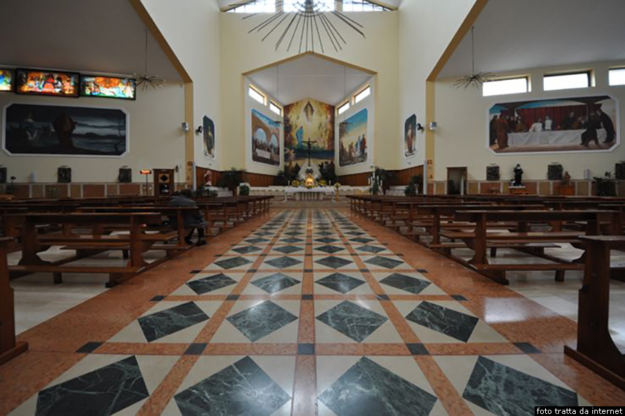La piccola chiesa del Sacro Cuore Da dove con la via Roma siamo arrivati alla piazza Vittorio Emanuele II nella quale si trova la Cattedrale di Santa Maria Maddalena, prendiamo verso sinistra la via Guglielmo Marconi, seguendo le indicazioni per la Circonvallazione Nord. Presa questa strada, la seguiamo evitando le deviazioni per circa un chilometro e duecento metri fino ad arrivare nella periferia nord occidentale dell’abitato. Qui, passato il cartello segnaletico che indica l’ingresso all’interno dell’abitato e passata l’abitazione al civico numero 211 della via Guglielmo Marconi, si trova alla sinistra della strada una vecchia piccola scalinata, che ci porta a raggiungere più in alto la piccola chiesa del Sacro Cuore, che si trova in corrispondenza del civico numero 215 della via Guglielmo Marconi. Si trattava di una chiesetta campestre situata nella periferia settentrionale del paese, la quale poi, con il suo sviluppo, è venuta a trovarsi all’interno dell’abitato.