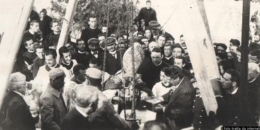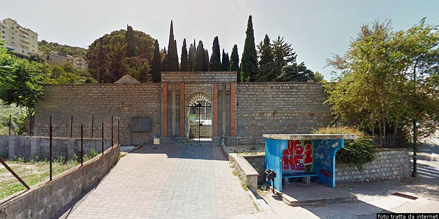 Il Cimitero di LanuseiDalla piazza Vittorio Emanuele, proseguiamo verso nord con la via Roma che, dopo una cinquantina di metri, incrocia la SS198 di Seui e Lanusei, che verso destra si presenta come via Umberto, e verso sinistra come via Guglielmo Marconi. Passiamo l’incrocio e proseguiamo con la contnuazione della via Roma, che assume il nome di via Alessandro Manzoni, la seguiamo per un centinaio di metri, dove la strada si immette sulla via Umberto, lungo la quale, dopo un’altra cinquantina di metri, si apre sulla destra la piazza della Solidarietà, che aveva un tempo il nome di piazza Marcia, ed è oggi un’area destinata soprattutto al parcheggio di mezzi pubblici e privati. Passata la piazza della Solidarietà, continuiamo lungo la via Umberto, e, dopo poco più di duecento metri, vediamo, alla sinistra della strada, il muro frontale con il portone di ingresso del Cimitero di Lanusei. Si tratta del nuovo Cimitero, edificato nel 1841, quando viene abolita l’usanza di seppellire i morti all’interno del sagrato della chiesa di Santa Maria Maddalena. In quella occasione viene inaugurato il nuovo spazio cimiteriale in Regione Marcìa, e lavori di risistemazione dell’area sono documentati per l’anno 1885, quando l’incarico viene affidato all’ingegnere Ravot di Cagliari.