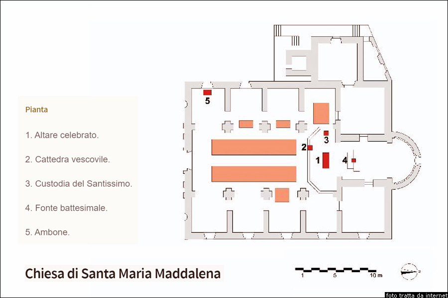 La Cattedrale di Santa Maria Maddalena Proseguendo lungo la via Goffredo Mameli, dopo appena una ventina di metri arriviamo al centro della città, in piazza Vittorio Emanuele, dove si trova la chiesa principale di Lanusei, ossia la Cattedrale dedicata a Santa Maria Maddalena, definita cattedrale essendo la chiesa più importante della diocesi, di cui costituisce il centro liturgico e spirituale, e che contiene la cattedra del vescovo della Diocesi di Lanusei. Questa Cattedrale è la principale chiesa parrocchiale di Lanusei. Alla piazza si poteva arrivare anche proseguendo lungo la via Roma ed evitando la deviazione in via Goffredo Mameili per vedere il palazzo Piroddi. Le prime tracce della chiesa di Santa Maria Maddalena si trovano in un documento del 1614, dove il canonico visitatore generale Melchiorre Piredda ordina di chiudere il Cimitero, allargare la porta per le donne, e di pianellare la chiesa con mattoni. Questo documento ci fa capire che la chiesa comprendeva anche il Cimitero come la maggior parte delle parrocchie di quel periodo, dato che solo in caso di morte di un prelato la sepoltura avveniva all’interno della chiesa. In realtà le sepolture all’interno e all’esterno della chiesa continuarono fino al 1842, anno di inaugurazione del Cimitero di piazza Marcia. Le testimonianze di monsignor Melano nel 1797 e di monsignor Navoni nel 1822, entrambi arcivescovi di Cagliari, denunciano il forte degrado in cui versava ancora allora la chiesa. La situazione diviene tanto grave che, all’epoca degli inizi dei restauri nel 1860, la chiesa non veniva più officiata da qualche tempo. I lavori di restauro portano alla demolizione quasi completa del vecchio edificio, sostituito dal nuovo tempio in stile neoclassico. Ulteriori interventi interessano la chiesa nel 1927, in occasione del trasferimento della sede diocesana d’Ogliastra dalla ex Cattedrale di Sant’Andrea di Tortolì a quella di Santa Maria Maddalena di Lanusei.