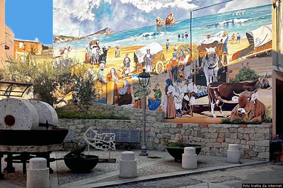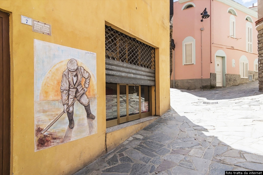 Due nuovi grandi murali di Michela CasulaNell’abitato di Loceri sono stati, in questi ultimi anni, posizionati due nuovi grandi murali che hanno reso ancora più attraente il suo centro per gli abitanti e per i turisti. Dall’inizio della via Evangelista Torricelli, la seguiamo e, dopo una cinquantina di metri, la strada sbocca sulla via Ferdinando Podda, intestata al Comandante di un plotone zappatori nato a Loceri nel 1892 e morto in combattimento sull’altipiano di Asiago il 10 giugno 1917, successivamente decorato con medaglia d’oro al valor militare. Presa la via Ferdinando Podda verso sinistra, percorsa appena una ventina di metri, sul muro di contenimento alla destra della strada è stato recentemente posizionato un nuovo importante murale che rappresenta L’agricoltura e le altre attività del paese, con gli abitanti che nella via del pane lo cucinano e che lavorano nei campi. Nelle foto che seguono è riportato il muro di contenimento prima e dopo la realizzazione del murale. Sul murale è riportata la frase Lieve è l’operar se in molti è condiviso, e quindi questo specifico murale, come molti altri nel paese, simboleggia il valore della collaborazione e della comunità, tema centrale nella produzione artistica locale.
