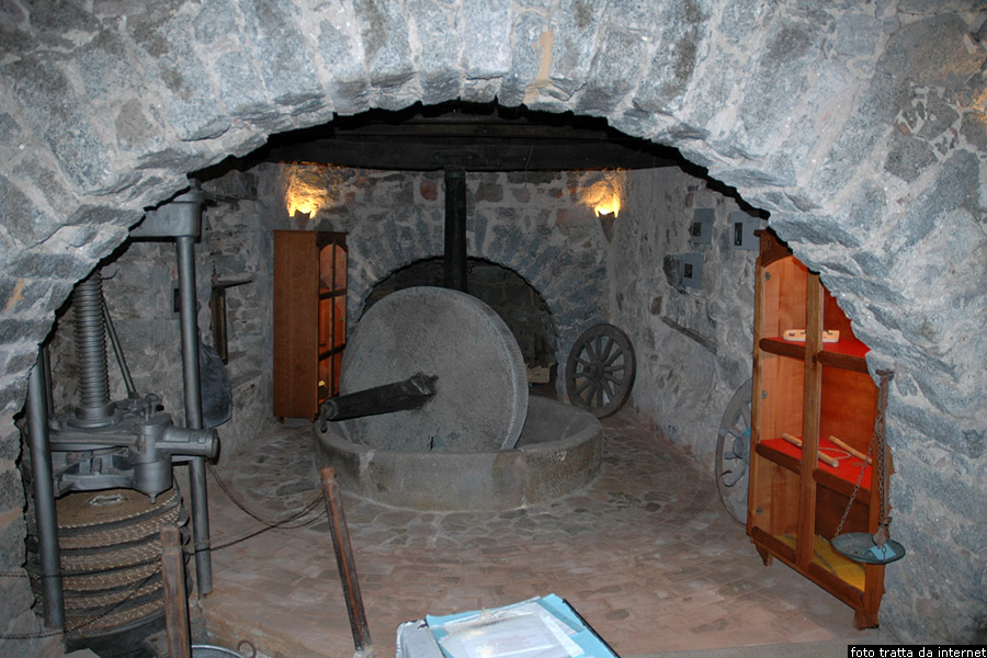 Il Museo Etnografico Sa Domu de S’Olia Da dove abbiamo visto partire a destra della via Roma la via Camllo Benso Conte di Cavour, percorsi ancora pochi metri vediamo partire a sinistra la via Lanusei. La seguiamo e, dopo una quarantina di metri, parte a destra la via Vittorio Emanuele lungo la quale, dopo una ventina di metri, alla destra tra il civico numero 8 ed il numero 10, parte la stretta deviazione che porta all’ingresso del Museo Etnografico Sa Domu de S’Olia, il quale è stato realizzato all’interno di un vecchio frantoio ristrutturato risalente ai primi anni del Novecento. Il suo nome Sa Domu de S’Olia è quello di una macchina artigianale per la spremitura delle olive, formata da una vasca circolare di granito, dove veniva raccolto il frutto, ed una ruota verticale, anch’essa di granito, che girava grazie alla spinta di un cavallo o di un asino bendato per poter mantenere sempre la stessa direzione.