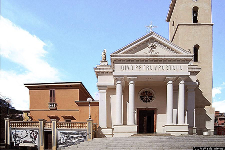 La Chiesa parrocchiale di San Pietro Apostolo Di fronte all’edificio che ospita il palazzo Municipale, alla destra della strada, al civico numero 21 della via Roma, si affaccia la Chiesa dedicata a San Pietro Apostolo che è la parrocchiale di Loceri. Eretta in stile neoclassico, è stata edificata nel Seicento. La fastosa facciata bianca, preceduta da una bella scalinata, è caratterizzata da un elegante pronao colonnato concluso da un timpano triangolare con cornice aggettante, e con un’elaborata croce. Il portale in legno intarsiato è sovrastato da un bel rosone decorato circolare. Sul lato sinistro dell’edificio si trova l alto campanile a canna quadrata alleggerito da quattro strette monofore, e terminante con una cupoletta con croce. Alla Chiesa di San Pietro Apostolo è stato annesso, fino al 1905, un cimitero, sostituito in seguito dal nuovo Cimitero Comunale.