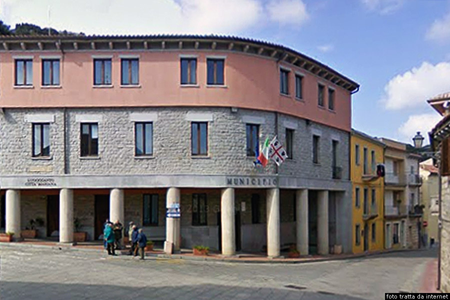 Il Municipio di LuogosantoProseguendo, la via Giuseppe Garibaldi ci porta nella parte alta del paese, nel suo centro storico, che si caratterizza per i bei palazzi e per l’utilizzo del granito nella costruzione delle abitazioni. Sulla via Giuseppe Garibaldi sbocca, dopo trecento metri, la via Vittorio Emanuele, e proseguendo arriviamo, in un centinaio di metri, in piazza Duomo, una piazza nella quale si trova, sulla destra, il palazzo che ospita la sede e gli uffici del Municipio di Luogosanto.