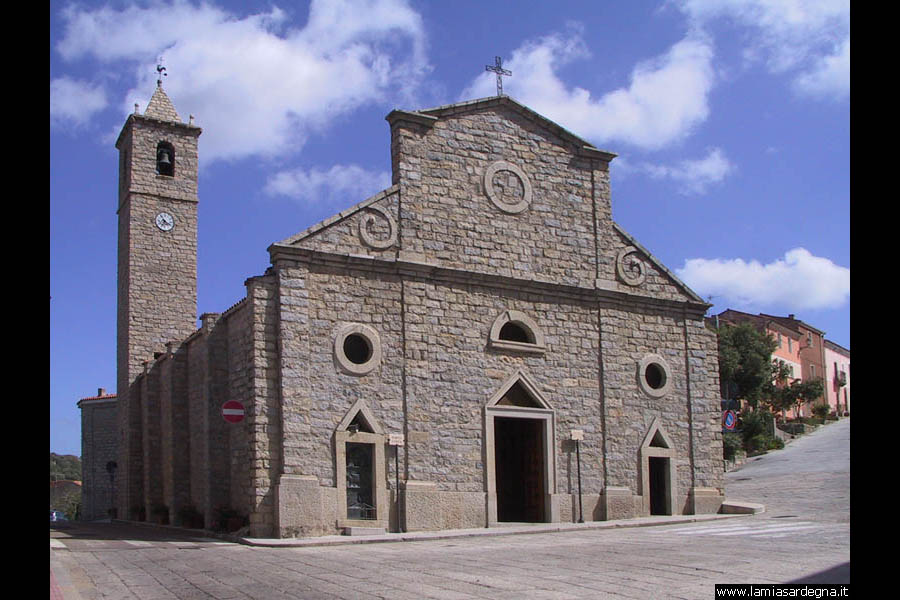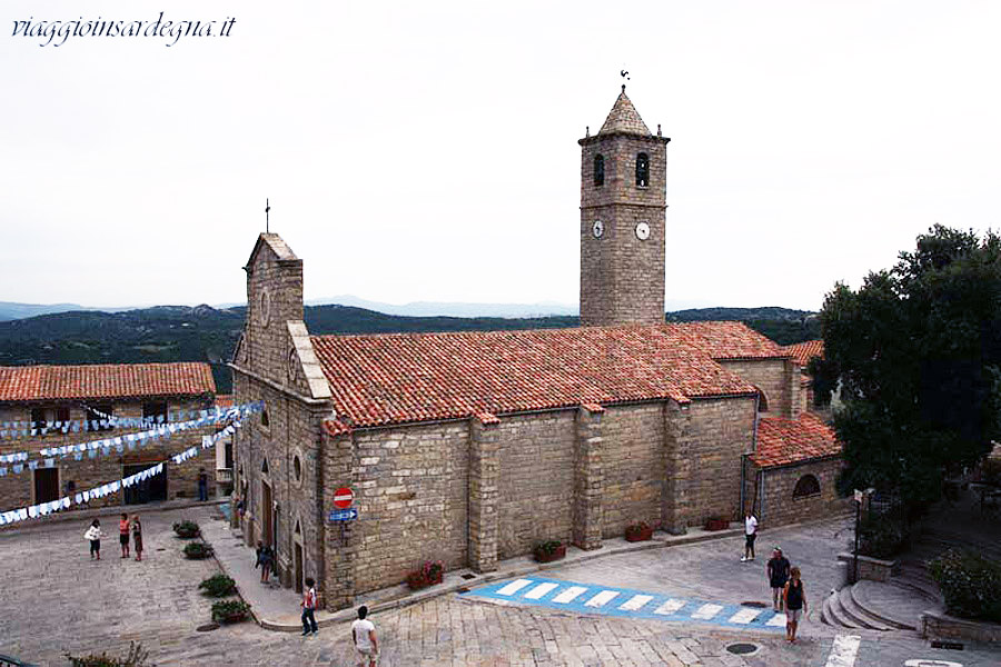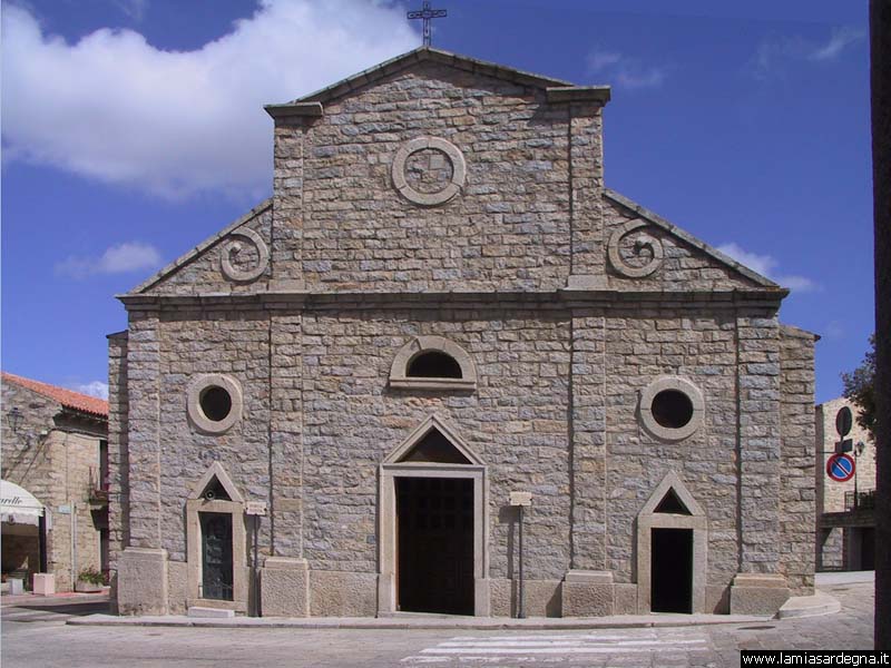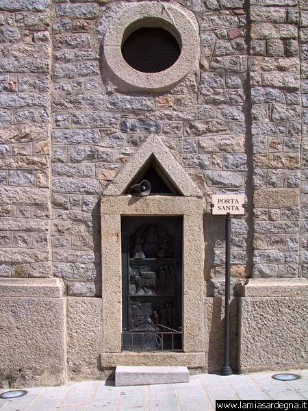 La Basilica di Nostra Signora di Luogosanto Di fronte al palazzo del Municipio, sulla sinistra della piazza, si trova la Basilica di Nostra Signora di Luogosanto, dedicata alla Natività della Beata Vergine Maria ossia a Maria Bambina, ed è diventato la chiesa parrocchiale del paese. La chiesa è stata edificata nel tredicesimo secolo in forme romaniche da alcuni Frati francescani in seguito ad un’apparizione della Madonna che indicava loro il luogo dove si trovavano le reliquie dei Santi Trano e Nicola, ma interamente ricostruita nel Settecento, tanto che della struttura iniziale restano solo poche tracce. Intorno alla chiesa sorse il primo borgo medioevale. La chiesa ha un impianto a tre navate. Nella navata di sinistra del Santuario si venera il simulacro della Vergine che vanta origini leggendarie. Si tratta della settecentesca statua lignea della Madonna di Luogosanto, che secondo la tradizione sarebbe stata trovata su una spiaggia di Arzachena portatavi dal mare. Nel 1227 per volere del papa Onorio III, la chiesa venne elevata alla dignità di Basilica Minore, denominazione onorifica che il papa concede a edifici religiosi particolarmente importanti attribuendovi il rango di basilica, e ad essa viene concesso il privilegio, accordato alle grande basiliche romane, di avere in dote la Porta Santa.