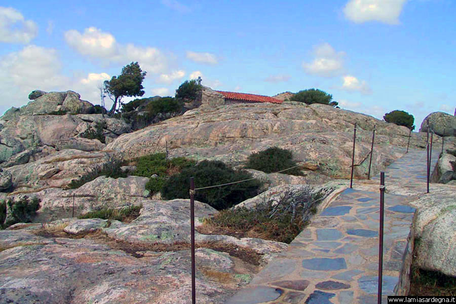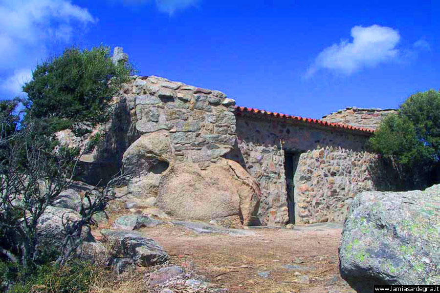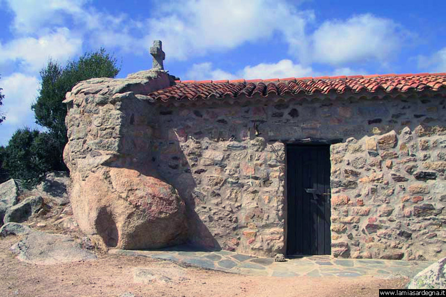 Le Cave di Monti Cappeddu con la chiesa di Nostra Signora o della Madonna di lu Rimediu ossia del RimedioSulla SP14, arrivati al bivio dove abbiamo svoltato sulla destra, percorsi poco più di duecento metri, svoltiamo a sinistra seguendo le indicazioni per la località Lu Mocu, e proseguiamo dritti. Dopo un chilometro e seicento metri, arriviamo a una deviazione sulla sinistra che porta verso le Cave di Monti Cappeddu, e, più a nord, alle Cave di lu Monti di la ’Jannitta. Percorsi duecento metri, arrivati alle cave, troviamo un bivio dove prendiamo verso sinistra, dopo quasi centocinquanta metri al bivio successivo prendiamo verso destra, proseguiamo e, dopo trecento metri, troviamo la chiesa campestre di Nostra Signora o della Madonna di lu Rimediu ossia Del Rimedio. Si tratta di una chiesa campestre che si trova nella Regione di Balajana, a poca distana dalla frazione Luogosanto denominata Lu Mocu. Di origine molto antica, probabilmente medioevale, la chiesa, sorta su un precedente tempio pagano, è suggestiva nella sua semplicità architettonica, ed ha due ingressi, dei quali quello sulla facciata è sormontato da un campanile a vela. All’interno, è presente una navata divisa in tre campate da archi in granito. Il soffitto è travi di legno ricoperte da tegole. Sulla parete di fondo è presente un nicchia, con cornice in legno, che racchiude il simulacro della Madonna. La chiesa è stata ristrutturata nel 1811, come si rileva da un’epigrafe sull’architrave dell’ingresso laterale. Sull’arco in granito del piccolo campanile che sovrasta la chiesa si nota la data del 1885, segno evidente di un successivo restauro. Nel piazzale antistante la chiesa, ben ombreggiato, si trovano i locali utilizzati come cucina, e vi sono le panche e i tavoli utilizzati nel giorno della Festa della Madonna del Rimedio, che si svolge ogni anno l’ultima decade di settembre.