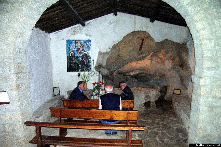 La SP14 ci porta al parco di San Trano e San Nicola all’interno del quale si trova l’Eremo di San TranoDal centro di Luogosanto usciamo verso est sulla SP14, la percorriamo per circa ottocento metri, poi, di fronte alla strada che a sinistra ci ha portato al Campo da Calcio di Luogosanto, evitiamo la prosecuzione della SP14 e svoltiamo, invece, a destra seguendo le indicazioni,su una strada in salita che percorriamo per poco più di un chilometro, e che ci porta a raggiungere il Parco di San Trano e San Nicola, all’interno del quale si trova l’Eremo di San Trano che sorgesu un rilievo granitico con una splendida vista sulle Bocche di Bonifacio. Secondo la tradizione, in questo luogo due Frati Francescani, di ritorno dalla Terra Santa, avrebbero rinvenuto i corpi dei due Santi che erano vissuti nel quarto secolo, e, obbedendo alla Vergine che sarebbe loro apparsa, avrebbero costruito, intorno al 1230, questa chiesa dedicata a San Trano ed un’altra, dedicata a San Nicola e oggi scomparsa. Oltre a queste due Chiese, i Francescani avrebbero fondato anche un Convento, e realizzato quella che poi sarebbe divenuta la Basilica di Luogosanto, dedicata alla Madonna patrona della Gallura. La memoria racconta, inoltre, che il nome del paese Locis Sanctus, sarebbe derivato proprio dalla presenza di queste due Sante figure e delle tante Chiese che vi sorsero. Secondo la tradizione, San Trano e San Nicola sono stati due anacoreti vissuti tra la fine del IV e l’inizio del quinto secolo, che scelsero di ritirarsi in eremitaggio vivendo di stenti e dedicandosi totalmente alla preghiera nella campagna di Luogosanto, e trovando rifugio nella grotta dove ora sorge il Santuario. Alla loro morte se ne sono perse le tracce, finche nel 1227, a due Frati Francescani, durante un pellegrinaggio di ritorno dalla Terra Santa, apparve la Madonna, che li guidò a ritrovare le loro spoglie proprio lì dove avevano sempre vissuto, e dove subito dopo è stata edificata la chiesa.