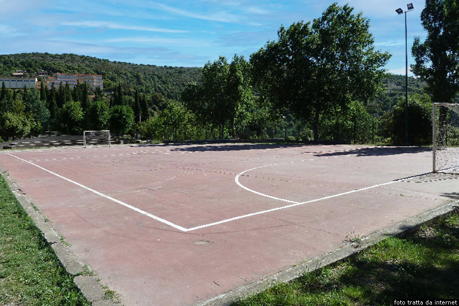 Il Campo da CalcettoPassato l’ingresso per il Cimitero Comunale, proseguiamo lungo la via Roma e, una cinquantina di metri più avanti, prima che la strada compia un’ampia curva verso destra avviandosi ad uscire dall’abitato come SS198 di Seui e Lanusei in direzione di Ussassai, si vede, alla sinistra della strada, l’ingresso del Campo da Calcetto di Seui.