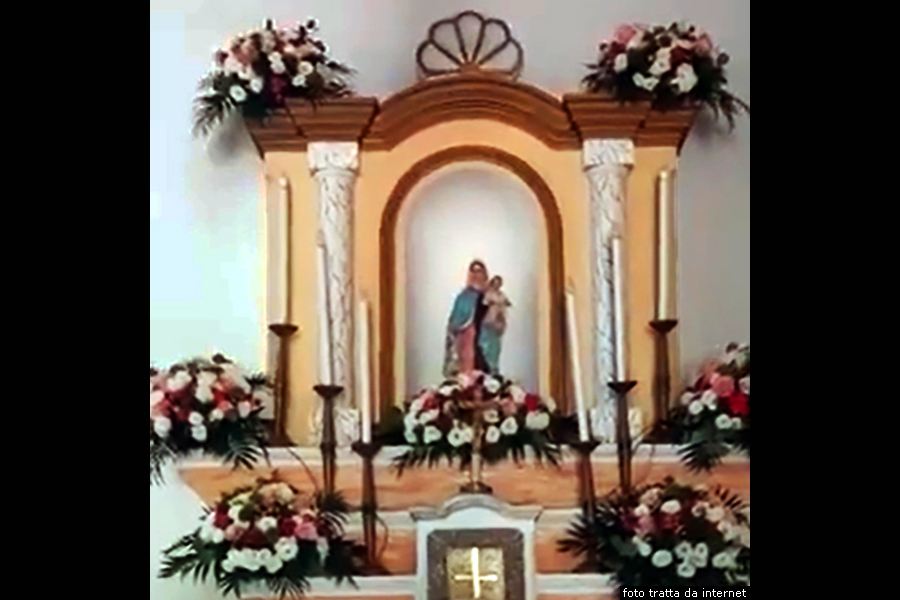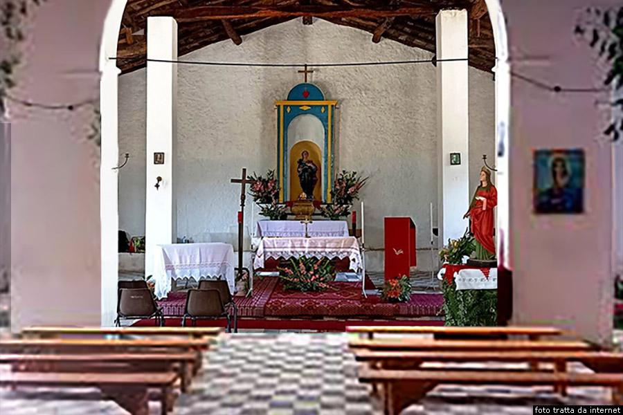 L interno si presenta con tre navate sormontate da una capriata, con altare rialzato da gradoni ed un pancale in tutto il perimetro interno del prebisterio. L’altare nella sua semplice composizione accoglie al suo fianco la statua della Santa, solo nel giorno dei suoi festeggiamenti liturgici.