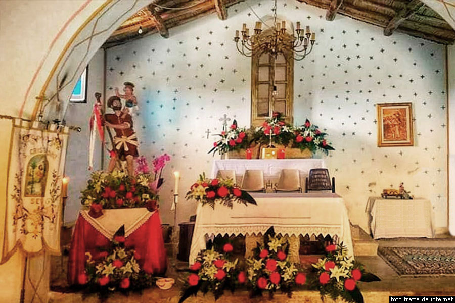 La nuova Chiesa di San Sebastiano e Santa BarbaraLa nuova Chiesa campestre di San Sebastiano, costruita alla fine degli anni ottanta del Novecento, quando per problemi soprattutto economici si sceglie di edificare una nuova Chiesa invece di ristrutturare la vecchia, ed in seguito viene intitolata anche a Santa Barbara protettrice dei minatori, e diviene, quindi, la Nuova Chiesa campestre di San Sebastiano e Santa Barbara. Della precedente Chiesa restano solo i basamenti risalenti al diciassettesimo secolo. In questa chiesa, al centro della facciata realizzata in pietra con decori laterali a bugnato, si apre un grande portone centrale a due ante in legno con arco a sesto ribassato, sormontato da un rosone circolare. Sul tetto a doppio spiovente con copertura in tegole spicca un bel campanile a vela ad una luce, sormontato da una croce latina.