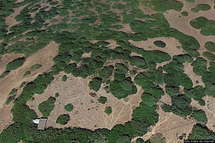 Albagiara con il suo centro ed i dintorni nei quali si trova il nuraghe complesso di San Lussorio Martire