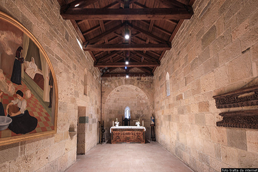 Ma il dipinto più prezioso presente nella chiesa un opera della fine del Cinquecento realizzata dal maestro fiorentino Baccio Gorini, traferitosi in Sardegna probabilmente a Florinas, dove divenuto pittore di riferimento per le Confraternite della Santa Croce della provincia di Sassari. Il dipinto raffigura La Sacra Famiglia con San Giovannino, nel quale sono rappresenti Maria giovane madre premurosa e melanconica, Ges bambino, dolce e ricciuto, e San Giuseppe, un pò in disparte e gi avanti con gli anni, ma comunque protettivo, figure alle quali si aggiunge quella di San Giovannino, che si porta l’indice sulle labbra ad indicare il religioso e sacrale silenzio verso il sonno del giusto. Questa opera menzionata da tutti i visitatori del diciannovesimo secolo come alberto la Marmora, Antoine Claude Pasquin noto come Valery, e Giovanni Spano che ne ricorda la grande devozione da parte dei fedeli, che invocavano la Madonna al centro del dipinto come Nosthra Segnora de Sos Isconsolados. Durante la persecuzione di Diocleziano ad Iconio, Città della licaonia in quella che oggi è la Turchia, si trova Giulitta, donna ricca e nobile, la quale era rimasta vedova con un figlio in tenera età, Quirico. Lasciata la sua Città e i suoi averi, per sfuggire alla persecuzione, scende con le sue ancelle verso la Seleucia e prosegue per Tarso, in Cilicia, dove è raggiunta e arrestata col suo bambino dal governatore romano Alessandro, con l’accusa di essere cristiana. Sottoposta a lunghi interrogatori per farla abiurare, rifiutandosi di sacrificare agli dei, confessa la sua fede. Una leggenda narra che Alessandro tiene il fanciullo sulle sue ginocchia. Quirico, vista la madre sofferente e sentite le sue parole, si dichiara anch’egli cristiano e muore scaraventato a terra dal governatore. La madre, pur impietrita dal dolore, resta ferma nella fede e, dopo strazianti torture, viene consegnata al boia per essere decapitata.