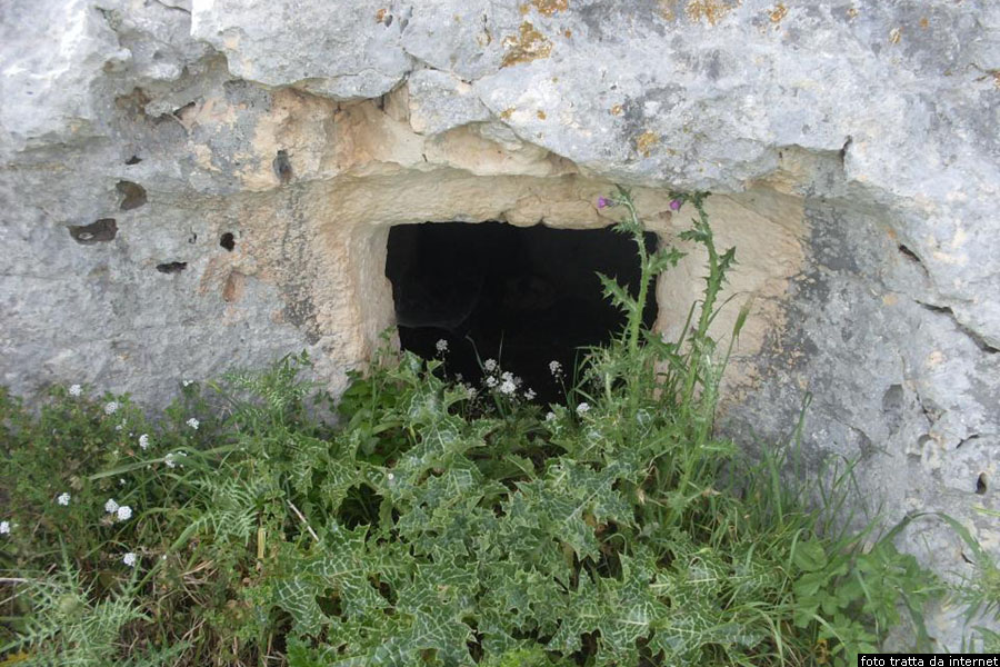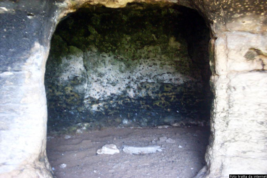 un’ulteriore tomba monocellulare anch’essa lesionata si trova, crollata, accanto alla tomba XII. Proseguendo verso sud raggiungiamo la tomba II, la quale si trova in posizione sopraelevata dal piano di campagna su un blocco di roccia calcarea il cui cedimento ha in parte distrutto gli ambienti interni. La tomba è pluricellulare, costituita da ben cinque ambienti, l’anticella, la cella e altri tre vani costituenti una tomba a sviluppo longitudinale. In essa, durante le ricerche, è stato rinvenuto un inedito motivo inciso, appena visibile ad occhio nudo, relativo alla rappresentazione del tetto ligneo.