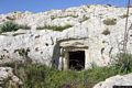 A una quarantina di metri di distanza dalla prima tomba si trova la tomba II, che riproduce sulla parete di roccia lo spartito centinato della stele formato da una lunetta, incompleta nel settore superiore, separata dal riquadro inferiore da un listello orizzontale. Il taglio superiore della parete rocciosa riproduce lo sviluppo delle ali dell’esedra e, in parte, del tumulo. Leggermente arretrati rispetto alla fronte ossia alla stele si trovano tre fori che dovevano probabilmente contenere altrettanti betilini litici. Ancora un breve corridoio immette nella cella rotonda che conserva sulla parete destra una nicchia, e nella quale sono presenti i segni della lavorazione delle superfici eseguita con uno strumento metallico.