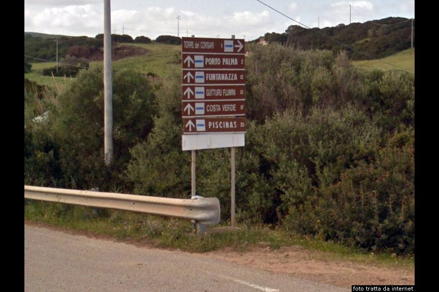 La Torre di Capo Frasca o torre NuovaAl centro della costa orientale del promontorio di Capo Frasca, a venti metri di altezza sul mare, si trova la Torre di Capo Frasca edificata nel 1577, che nelle carte topografiche è segnalata con il nome di Torre Nuova. Molto difficile visitarla perché situata all’interno dell’area militare, è realizzata con lave e tufi basaltici. La struttura si presenta in condizioni scadenti, infatti la volta a cupola, che si trovava all’interno, è crollata. Restano cinque grandi archi in mattoni, che si ritiene dovessero sorreggere la copertura del terrazzo, anch’essa crollata. La piccola Cala chiamata Porto TerrexiDal centro del piccolo borgo di Sant’Antionio di Santadi, seguendo le indicazioni prendiamo a sinistra la Strada Comunale S’Enna S’Arco che conduce verso il mare. Prima di giungere in prossimità della costa, svoltiamo a destra, e seguiamo la stradina di campagna, sino alla piccola Cala di Porto Terrexi, che si trova sul versante sud occidentale del promontorio, all’interno del Poligono Militare di Capo Frasca. Gli esperti di Trekking La possono raggiunge a piedi. Nella zona nord del territorio costiero di Arbus, il mare lambisce una bassa scogliera, tra la quale troviamo una piccola Cala chiamata Porto Terrexi. Il suo arenile è caratterizzata da un fondo di ciottoli levigati di modeste dimensioni, tra i quali si trovano rocce e scogli, che si affaccia su un mare di un colore verde cangiante a seconda dell’altezza del sole, con un fondale roccioso, e di media profondità. Alle spalle della spiaggia, si alzano colline tondeggianti ricoperte di un manto di macchia mediterranea. Non sono presenti servizi in questa cala, che non e altamente frequentata. A sud di Porto Terrexi, si trova la grande scogliera degli Scogli Neri, che si prolunga fino quasi a Punta de S’Achivoni, dopo la quale si apre l’ampia insenatura di Pistis. Verso sud da Capo Frasca a Porto Palmas passando per Pistis e Torre dei CorsariDal centro del piccolo borgo di Sant’Antionio di Santadi, seguendo le indicazioni prendiamo a sinistra la Strada Comunale S’Enna S’Arco che conduce verso il mare e poi svolta verso sud seguendo la costa, proseguendo verso sud e portandoci a Pistis, da dove proseguiremo verso Torre dei Corsari, per arrivare infine a Porto Palmas La frazione Pistis con il suo insediamento turisticoPresa la Strada Comunale S’Enna S’Arco, percorriamo tre chilometri ed arriviamo all’agglomerato turistico della frazione Pistis (altezza metri 5, distanza in linea d’aria circa 25,05 chilometri sul livello del mare, abitanti 8) affacciato sulla costa, decisamente realizzato in modo confuso e non bello. Il paese si trova all’interno di un’ampia baia, chiusa a nord dalla Punta de S’Achivoni ed a sud dal Promontorio di Flumentorgiu, sul quale sorge la torre che descriveremo più avanti. L’agglomerato turistico si affaccia sul mare in un tratto di litorale, caratterizzato soprattutto dalla presenza di rocce e scogliere, con alcune piccole belle calette.