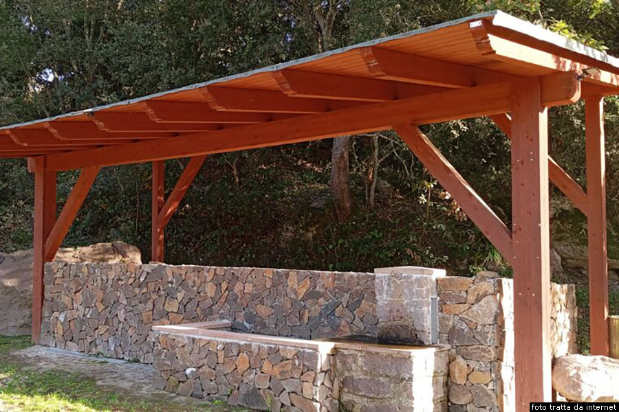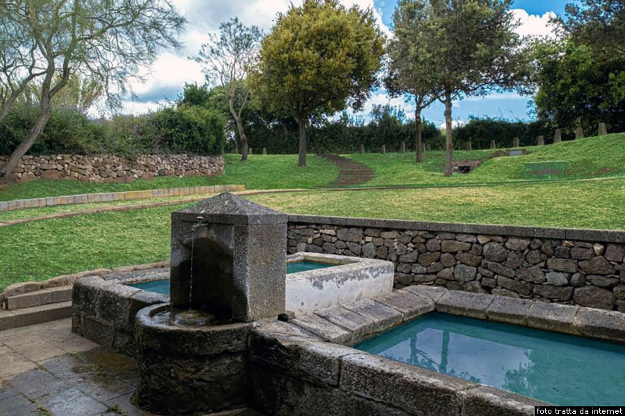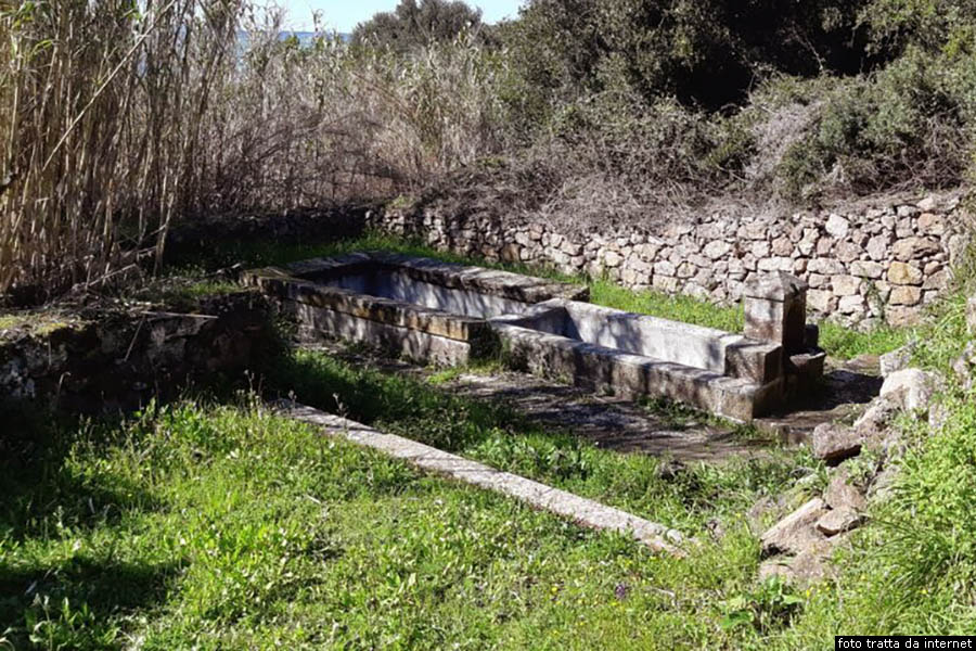 La Funtana Manna nella frazione Sa MelaArrivati all’interno della frazione Sa Mela, procediamo lungo la SP2 per circa cinquecento metri e, poco dopo aver passato il cartello indicatore del chilometro 13, prendiamo la prima deviazione a sinistra e la seguiamo per duecentotrenta metri, poi svoltiamo a sinistra e, dopo poco più di una cinquantina di metri, vediamo alla sinistra della strada la Funtana Manna, che è stata per anni il punto di approvvigionamento idrico più importante per l’habitat disperso tipico del territorio in cui è situata. Inoltre, presentando una copertura, sia sulla fontana che sulla vasca, permetteva alle massaie che vi si recavano a lavare i panni di proteggersi dalla pioggia durante le giornate invernali e dal sole nelle calde giornate estive.