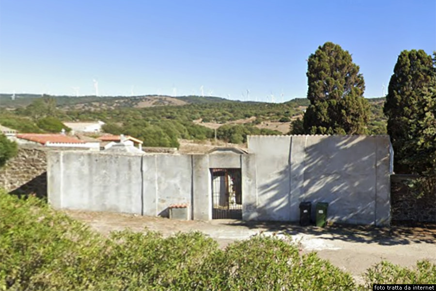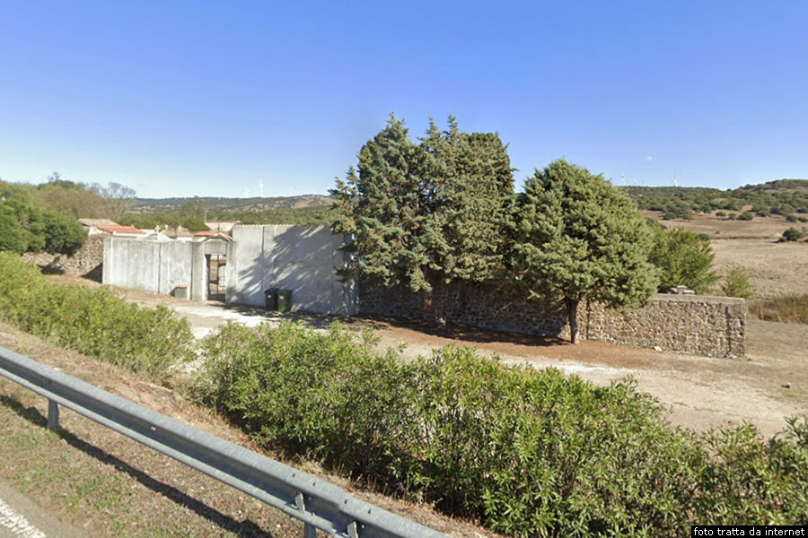 Il Cimitero Comunale di ErulaInvece di deviare sulla destra nella via Walter Frau, proseguiamo dritti lungo la via Nazionale, che, uscendo dall’abitato, riprenderà il nome di SP2 e si dirigerà verso sud est, per poi procedere verso l’abitato di Tula. Dopo aver percorso circa seicentocinquanta metri, arriviamo a uno svincolo nel quale prendiamo una deviazione sulla destra che, seguita per un centinaio di metri, ci porta all’ingresso del Cimitero Comunale di Erula. il quale si trova alla destra di questa strada.