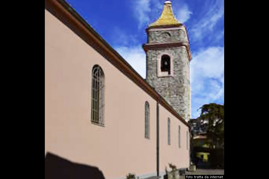 L’impianto interno è a mono navata con due cappelle semicircolari, una per lato. L’ampio presbiterio semicircolare è sopraelevato rispetto alla navata da due gradini. Le murature sono in pietra locale scistica faccia a vista. Gli archi a tutto sesto che immettono nelle cappelle laterali e nel presbiterio sono realizzati con mattoni di terracotta.