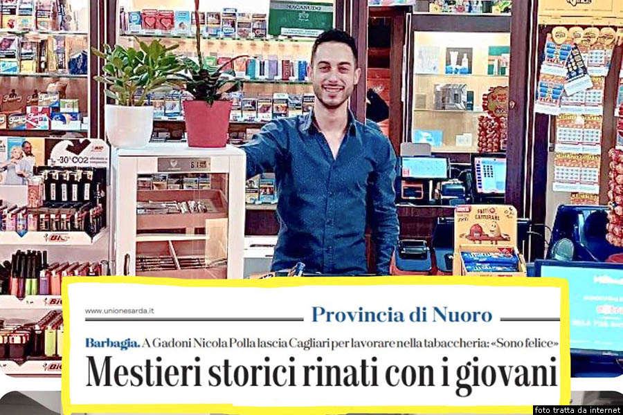 Questo edificio oggi possiede un ricordo dei suoi cittadini caduti nella Grande Guerra, conservato in una lapide rettangolare, sagomata in marmo bardiglio, che è affissa sulla facciata della caserma dei carabinieri, alla sinistra del portone di ingresso. Sul corpo della lapide è presente una fitta decorazione costituita da rami di quercia e alloro. Al centro, legato a tali racemi, è un cartiglio che ospita l’iscrizione dedicatoria e i nomi dei caduti. Elementi decorativi e iscrizioni sono resi a incisione. La lapide è stata realizzata tra il 1920 ed il 1925 da Luigi Onali, e la famiglia Onali è stata impegnata durante tutto il primo dopoguerra nella produzione di lapidi dedicate ai caduti, che erano lapidi varie, ma riconoscibili erano le forme e le tipologie decorative di tali manufatti. Possiamo arrivare in piazza IV Novembre con il corso Umberto IPossiamo arrivare nella piazza IV Novembre anche in modo più semplice evitando la chiesa parrocchiale di Maria Vergine Assunta. Prima di arrivare al Municipio di Gadoni con il corso Umberto I, evitando la deviazione in via Santa Maria ed invece proseguendo verso sud, percorriamo appena centoventi metri ed arriviamo nel punto dove parte a destra la via Roma, ed alla sinistra di questa strada si apre l’ampia piazza IV Novembre. E proprio all’inizio della via Roma, alla sinistra al civico numero 1, dopo otto anni trascorsi lavorando a Cagliari, ritornato nella sua Gadoni l’amico Nicola Polla ha deciso di aprire una sua nuova tabaccheria ed edicola multifunzionale. «Una scelta di cui sono felice - racconta Nicola - ho riscoperto amicizie storiche e il valore dell’essenziale, mettendo in pratica l’esperienza maturata in città».