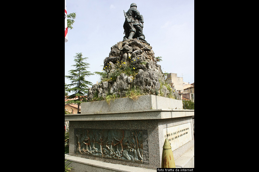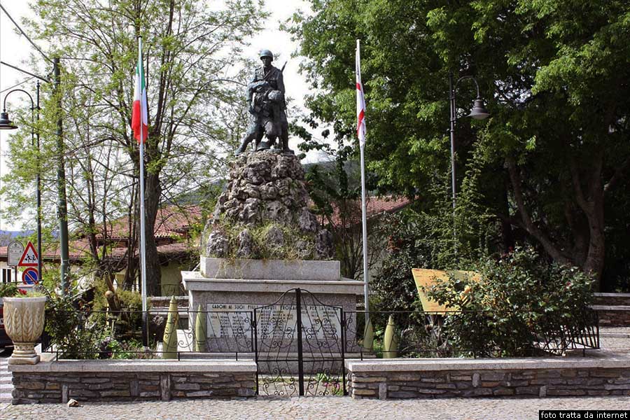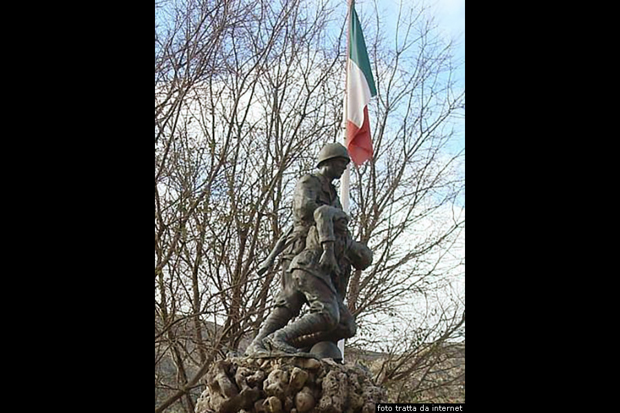 Affacciato sul corso Umberto I si trova il Monumento ai Caduti in guerraSul lato meridionale della piazza IV Novembre, affacciato sul corso Umberto I, si trova il Monumento ai Caduti in guerra di Gadoni, che è compreso entro una recinzione e affiancato da pezzi di artiglieria. Il monumento è composto ad un basamento in granito, sul quale si trova una piramide rocciosa naturalistica e, al culmine, un gruppo scultoreo bronzeo che ritrae un soldato che tiene per le spalle un suo commilitone ormai spirato. Sulla faccia principale del basamento è presente le lastra recante i nomi dei caduti, su quella sinistra è la dedicazione, mentre sulla faccia posteriore è un bassorilievo bronzeo, sul quale è raffigurato un bosco con alberi rinsecchiti e, all’estrema destra, una anziana donna che consola sul suo grembo una giovinetta.
