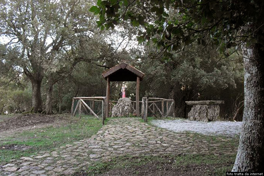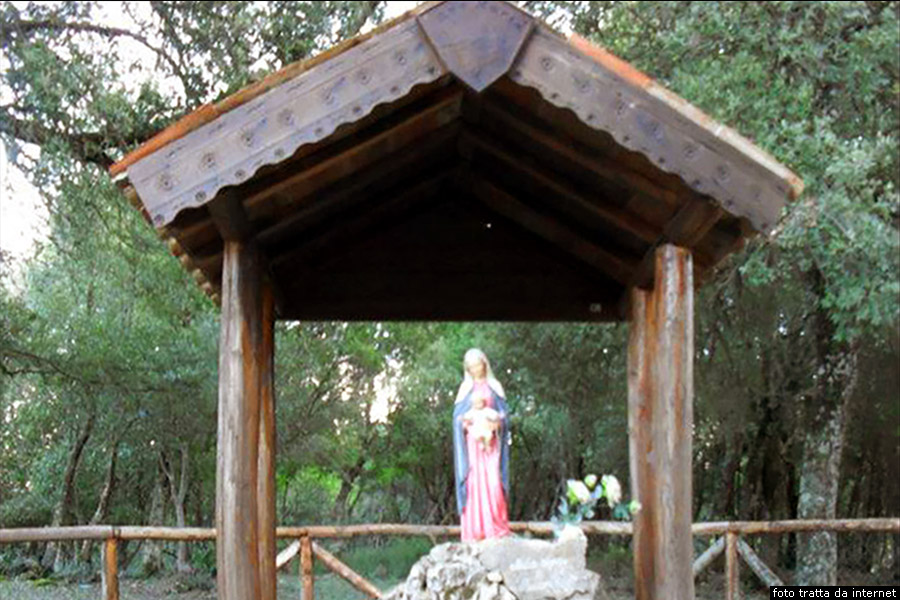 Presto questa Cappella si svolge ogni anno, il 4 dicembre, la suggestiva celebrazione della Festa di Santa Barbara, a cui partecipa tutta la popolazione. La Cappella dedicata alla Nostra Signora di BauzzoniRiprendendo la strada che ci ha portato a Funtana Raminosa, la seguiamo per tre chilometri e ottocento metri, poi svoltiamo a sinistra in una strada bianca che, dopo un paio di chilometri, ci porta alla piccola Cappella dedicata alla Madonna di Bauzzoni. Si tratta di una piccola Cappella costituita da quattro pali in legno che sostengono una copertura a capanna, anch’essa in legno. Sotto la copertura è presente la statua della Madonna.