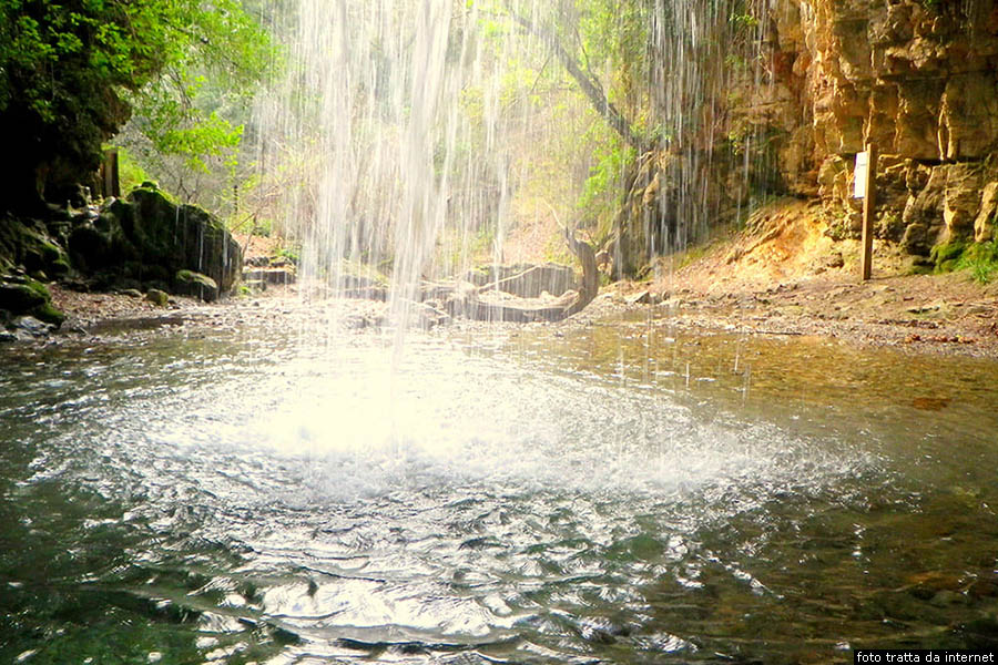La cascatella detta Sa StiddiosaLa delicata cascatella detta Sa Stiddiosa, formata sul piccolo rio Bauzzoni affluente da sinistra del Flumendosa, si trova un paio di chilometri a sud est rispetto alla Cappella dedicata alla Madonna di Bauzzoni, ai confini tra il territorio di Gadoni e quello di Seulo. Il nome significa letteralmente gocciolante e deriva da is stiddius, ossia l’effetto delle gocce d’acqua che cadono, e in questo caso creano una piccola cascatella a strapiombo sull’alveo del Flumendosa. Anzi, più che una cascatella, si tratta di una pioggerella, uno sgocciolìo fitto fitto, che scende da una sorgente carsica soprastante. Le gocce precipitano lungo un’imponente parete rocciosa levigata, perpendicolare all’alveo del fiume, caratterizzata da enormi concrezioni calcaree depositate dal continuo scorrere dell’acqua e ampiamente ricoperta da piante idrofile, soprattutto capelvenere, felce della famiglia delle Adiantaceae. L’acqua sorgiva si divide in mille rivoli deviata da concrezioni e vegetazione, il risultato è la fitta pioggerellina, che precipita con uno stillicidio denso in inverno e pacato in estate. Termina la caduta in un laghetto d’acqua verde smeraldo ai margini della sponda destra del fiume, dove nella bella stagione si può fare il bagno, mentre si assiste allo spettacolo.