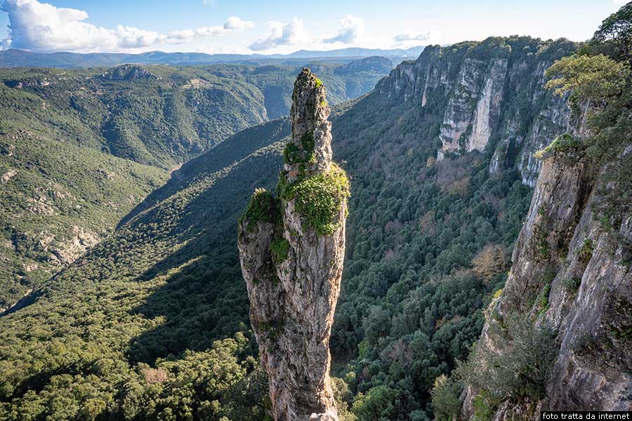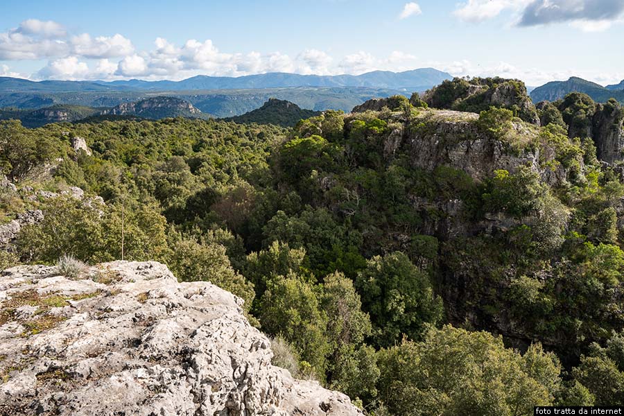 Qui si staglia Su Campanili, chiamato dai gadonesi Su Campalini, un pinnacolo roccioso esile ed ardito, quasi un campanile, come il nome in sardo pare suggerire. Il pinnacolo si trova nella foresta di Corongia, con i suoi ottanta metri di altezza, svetta parallelamente alle cenge della medesima foresta, dove la cenge sono sporgenze pianeggianti della parete rocciosa, che interrompono la verticalità della montagna, spesso sede di sentieri o punti di riposo durante un’ascensione. Ed a monte di Su Campalini, è possibile ammirarlo per godere, oltre che della sua grandezza, anche della vallata del Flumendosa che regna alle sue spalle. Le formazioni rocciose di Is Breccas dove si trova la grotta di Sa Corongia rifugio del feroce TorracorteDopo una lunga sosta panoramica si ritorna sulla strada sterrata continuando in direzione sud finché si incontra un grosso bivio: qui si prende a destra, in salita, oltrepassando un cancello e proseguendo sulla strada principale. Ben presto la strada ritorna in piano, su terreno argilloso e comincia a costeggiare dei singolari torrioni isolati di roccia che divengono sempre più numerosi, fino a formare un vero e proprio labirinto di pareti, grotte, fenditure e diaclasi. La zona ospita le suggestive formazioni rocciose di Is Breccas, che costituiscono un paesaggio primordiale e incantato, modellato dalla forza della natura, con falesie, labirinti, pinnacoli e grotte coperti da boschi e attraversati da corsi d’acqua pura. I percorsi si snodano lungo un altopiano che sovrasta la valle del Flumendosa, dove vento e acqua si sono divertiti a scavare la roccia scistosa e calcarea, disegnando ambienti dal fascino ancestrale, e ad Is Breccas, tra particolari formazioni rocciose chiamate tacchi, sembra di essere dentro un labirinto attraversabile grazie ai passaggi sottoroccia e alle scale nascoste.