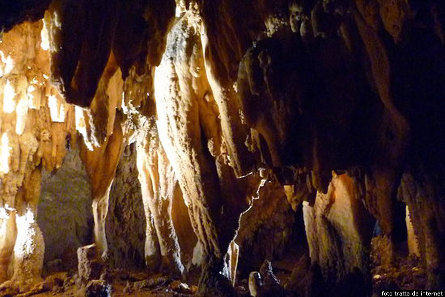 Visita della grotta di Taquisara Da dove avevamo visto la Stazione ferroviaria di Gairo Taquisara, proseguendo verso sud lungo la via Ospitone per solo un centinaio di metri, seguendo le indicazioni svoltiamo a destra in via San Giorgio e la seguiamo anche dove, dopo una curva a destra, prosegue verso nord. Percorsa per duecentocinquanta metri, prendiamo verso sinistra una pista sterrata con forte prendenza e priva di protezioni, che conduce in poco più di cinquecento metri al parcheggio, dove lasciare la macchina per l’accesso alla Grotta di Taquisara, che si trova all’interno di uno dei più celebri Tacchi d’Ogliastra. La grotta è attiva ancora oggi ed è caratterizzata dalla presenza di alcune sale ciascuna con diverse concrezioni. Le circolazioni di acqua sono un pò ovunque, sino dall ingresso, con stagionalit .