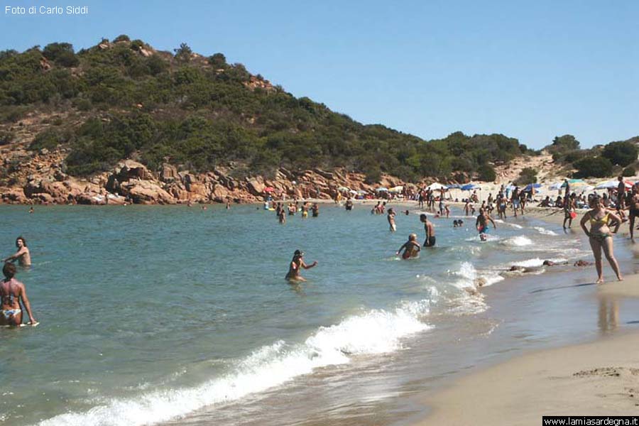 La Cala Francese con la spiaggia di Su SirboniSi prosegue verso sud, e, a circa sei chilometri dalla località Buoncammino, dove la strada che tende a salire, si parcheggia. Come indicazione per raggiungere la Cala Francese, all’interno della quale si trova la spiaggia di Su Sirboni, ossia spiaggia del Cinghiale, possiamo dire che siamo circa dieci chilometri e mezzo a sud di Barìsardo. La spiaggia, oltre che dal mare, è visitabile da terra unicamente a piedi e da nord, per mezzo dell’unico passaggio consentito dai proprietari dei terreni circostanti, mentre da sud il percorso, sempre a piedi, è lungo e difficoltoso. L’imbocco del sentiero per arrivare alla spiaggia non è indicato bene, ma se ci sono già macchine parcheggiate (a luglio e agosto è facile che ce ne siano...) si intuisce dove bisogna scendere. Da qui parte un sentiero che, dopo circa cinquecento metri, percorsi dieci o quindici minuti a piedi, porta alla Cala Francese, con la spiaggia. È molto naturale, senza servizi. Si tratta di una baia riconoscibile per la presenza, alle spalle della spiaggia, del curioso Hotel Su Sirboni, da decenni inattivo, costituito da un villaggio di bungalows, da alcuni turisti chiamato il villaggio abbandonato, perché pressoche disabitato da diversi anni ed ormai inglobato nella natura del luogo. La macchia mediterranea arriva fino alla bella spiaggia di Su Sirboni con limpida acqua color turchese bassa fino a 40/50 metri dalla riva, praticamente quasi una piscina naturale. È un arenile di piccole dimensioni, costituito da una spiaggia caratterizzata da sabbia fine e bianchissima, affacciata su un mare azzurro verde poco profondo, chiuso da due scogliere di granito rosso, immerso nella macchia mediterranea e bagnato da un mare trasparente e pulito. Non tanto affollata, neanche in alta stagione, poiché non facilmente accessibile e nascosta dalla folta vegetazione. Verso sud, appena girati gli scogli, con pinne e maschera, si possono contemplare i meravigliosi fondali di granito rosso. Ideale per gli amanti del surf, grazie ai venti che qui battono quasi sempre forti.