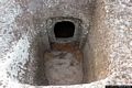 Proseguendo lungo la strada sterrata, più avanti, dopo circa un’ottantina di metri, si scorge proprio sul margine della strada la seconda tomba, anch’essa a pozzo verticale, che però è assai poco valorizzata dato che, a differenza della prima, non possiede decorazioni che la valorizzino.