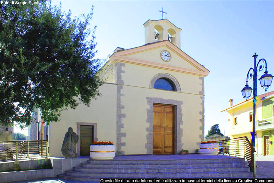 La Chiesa parrocchiale della Santissima Madonna della NeveNella piazza San Giorgio si trova la Chiesa dedicata alla Santissima Madonna della Neve che è la parrocchiale di Piscinas, intorno alla quale si è sviluppato il piccolo centro abitato caratterizzato da abitazioni dotate sul retro da un ampio cortile, nel quale venivano ammassate e lavorate le derrate agricole. La Chiesa è stata costruita ampliando una capella già estistente, databile al 1365, che era forse legata ai monaci Benedettini. Dell’impianto originario si individua una piccola porzione nelle murature esterne. L’aspetto esterno è solido ed imponente, con una elegante facciata caratterizzata dalla cornice in pietra viva del portale d’ingresso, conci di trachite rossa locale e dagli spigoli della facciata, anch’essi lasciati nudi, contrastando piacevolmente con l’intonaco di colore chiaro. Una leggera cornice in mattoni di cotto, di piccole dimensioni, divide la parte superiore della facciata, che ospita una lunetta con cornice ben sagomata chiusa da un vetro istoriato. Il timpano neoclassico, sormontato da un doppio campanile a vela, è caratterizzato da una pesante cornice sagomata, ed al centro è presente un orologio circolare. Nella parte del paramento murario dell’abside sono presenti delle nicchie su tre file orizzontali, ed al centro, nella parte superiore, è inserita una lunetta con cornice sagomata e chiusa da vetro istoriato. La struttura attuale risale al 1880, con pianta a croce latina a navata unica e i due bracci laterali trasformati in cappelle. La copertura è a capriate lignee scandita da tre ampi archi che poggiano su semicolonne con capitello semplice e a base quadrangolare. L’interno della Chiesa è antico ma con molti elementi modernizzati, e nella sacrestia si trova una bella statua della Madonna della Neve, Patrona del Comune di Piscinas, del diciassettesimo secolo, in legno policromo.