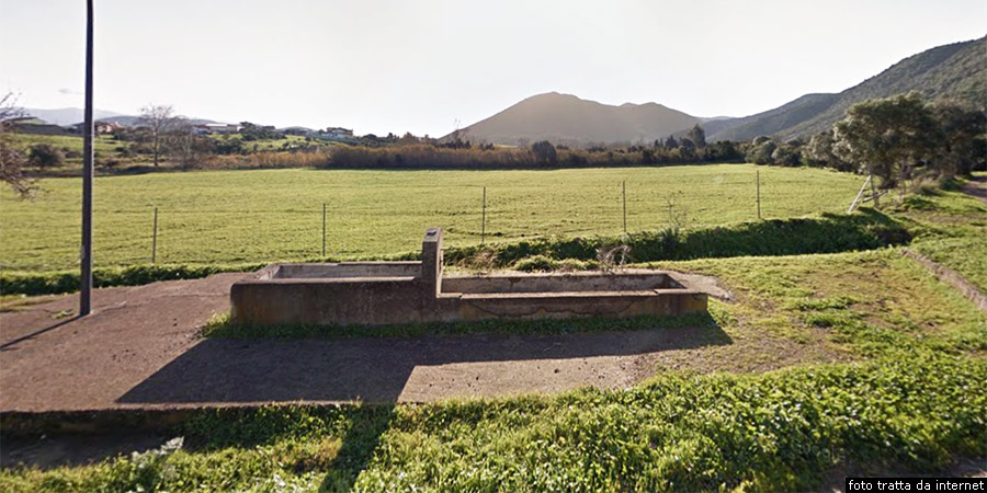 La frazione via della Pineta e la sorgente S’Acqua Callenti oggi Sa CraccheraDal Municipio di Piscinas prendiamo, invece che verso sud la prosecuzione della via Regina Giovanna, un poco più a destra la via dei Giardini. La seguiamo per poco più di cinquecento metri, poi la strada svolta leggermente verso destra in via su Muntisceddu, che fa imboccare un ponte sopra il fiume. Percorsi duecento metri, troviamo a destra la deviazione in via della Pineta, che in un centinaio di metri porta all’interno della frazione di via della Pineta (altezza 81 metri, distanza in linea d’aria circa 0.89 chilometri sul livello del mare, abitanti 25), che si trova alla base di un’altura verso ovest, sulla cui sommità si trovano i resti del nuraghe Acqua Callenti di tipologia indefinita, edificato a 98 metri di altezza. Vicino al fiume, dove dalla via su Muntiscaddu parte verso destra la via della Pineta, alla sinistra della via su Muntisceddu si trova Sa Cracchera una vasca termale costruita in tempi antichi vicino a una sorgente chiamata S’Acqua Callenti, ossia di acqua che un tempo era calda. Piscinas potrebbe trarre il suo nome proprio dalla presenza di piscine, ossia di acque termali, che si formavano nella sua zona, ed il borgo di Piscinas sorge in periodo medievale e si sviluppò in seguito proprio grazie anche a queste fonti termali che furono apprezzate a partire dall’Ottocento.