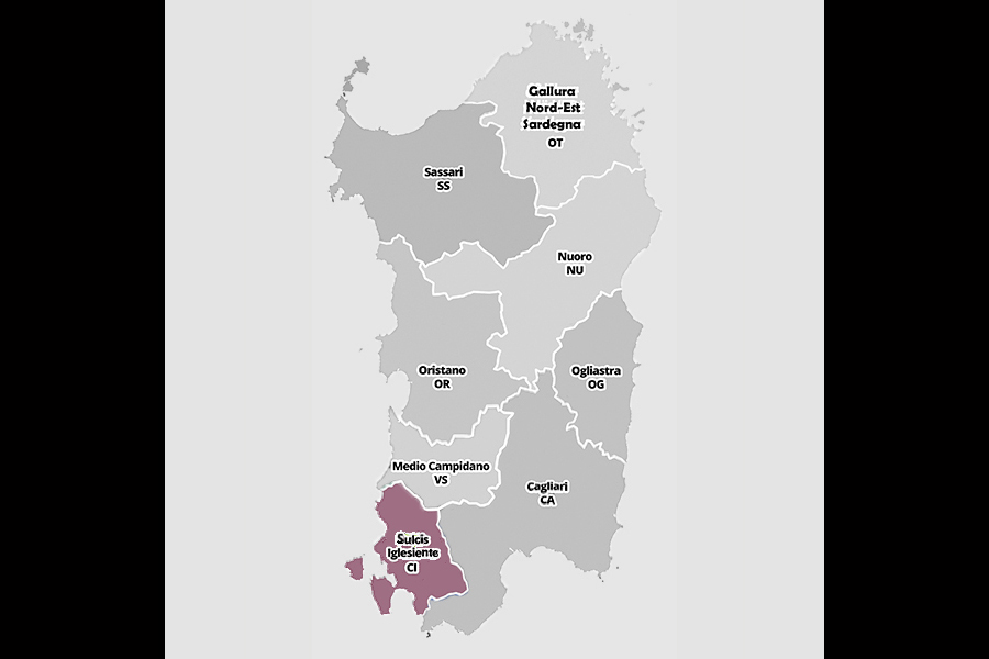 La Provincia del Sulcis Iglesiente ed i suoi 24 comuni con la costa sud occidentale dell’Isola