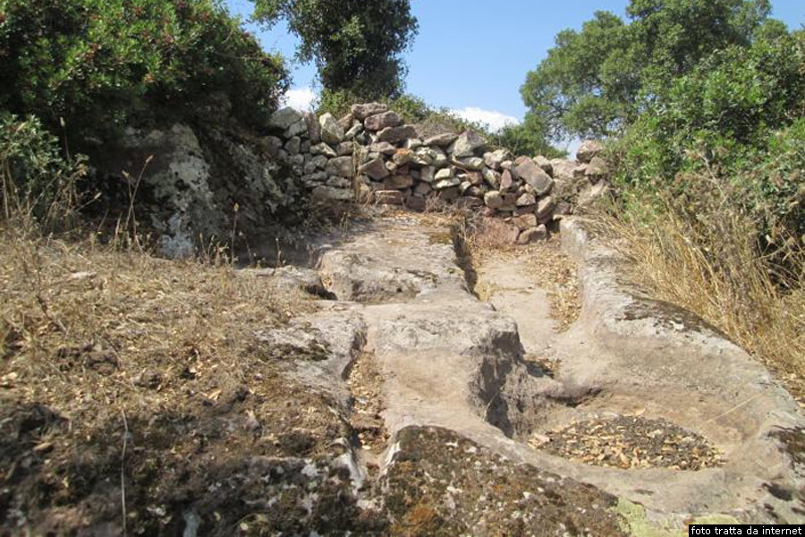 L’area archeologica di Santu TeruIn prossimità della chiesa campestre di Santu Teru, circa duecento metri più a sud, nell’area archeoogica di Santu Teru, sono presenti quattro sepolture scavate sul bancone roccioso, ossia quattro domus de janas di cui due monocellulari e due che non sono state però completate. Sullo stesso bancone roccioso sono evidenti diversi palmenti, ossia diverse vasche ampie e non troppo profonde utilizzate forse per la fermentazione del mosto o per frangere le olive o ridurre in polvere i semi oggetto di molitura.