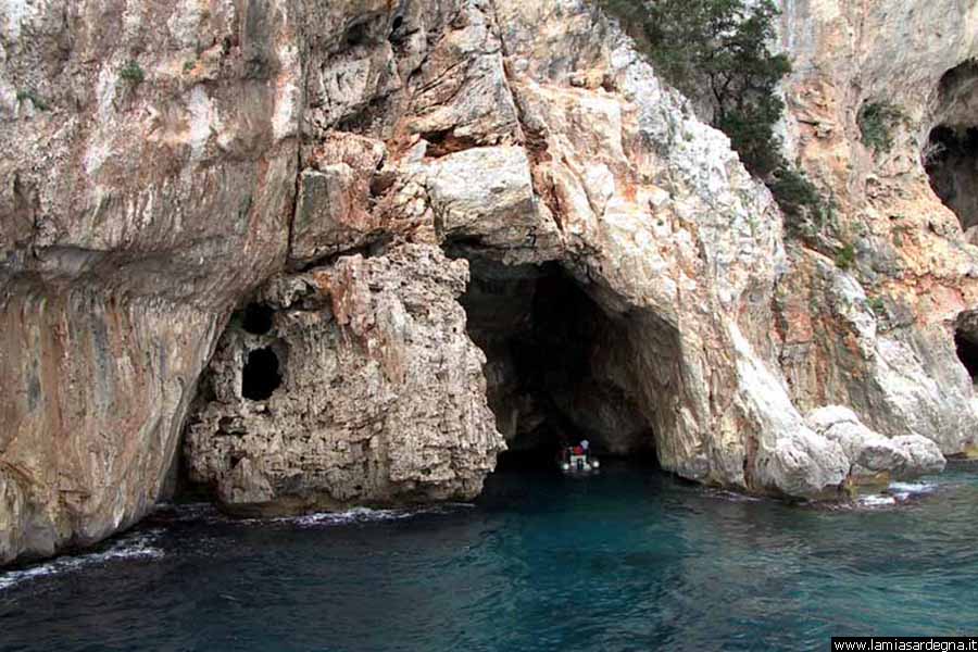 La grotta di CormoraniPassata Cala Sisine, lungo le alte pareti calcaree si aprono diverse grotte e grottoni. La più conosciuta e spettacolare è la cosiddetta Grotta dei Cormorani con gli splendidi colori della roccia che si riflette nelle sue limpidissime acque.