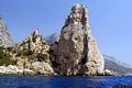 Il pinnacolo di roccia calcarea chiamato Pedra Longa o anche AgugliastraPer raggiungere il pinnacolo di roccia calcarea chiamato Pedra Longa, dal belvedere di Santa Maria Navarrese si può prendere un sentiero che si sviluppa a mezza costa. Dopo cinque minuti c’è un bivio, al quale bisogna stare sul sentiero più alto, di sinistra. In circa un’ora si raggiunge la Pedra Longa. Un modo più agevole, ma meno spettacolare, per arrivarci è, da Baunei sulla SS125 Orientale Sarda verso sud in direzione di Lotzorai. Dal Cimitero di Baunei si percorre un chilometro e trecento metri, e, all’altezza del chilometro 153, si trova la deviazione a sinistra per Pedra Longa. Dal bivio la strada sale per un pò e poi scende ripidissima verso il mare, fino ad arrivare, dopo poco più di tre chilometri e mezzo, a un ampio parcheggio con un bar ristorante. È consigliabile avere i freni della macchina a posto se non si vuol rischiare di finire in mare...