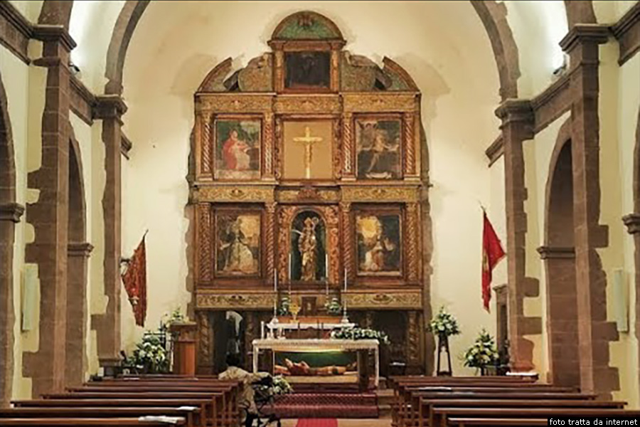 La chiesa di Nostra Signora del Rosario chiamata oggi parrocchia Abbaziale di Nostra Signora di CorteLungo il corso Umberto I, Duecentosettanta metri più avanti del Municipio, alla destra della strada si trova la Chiesa di Nostra Signora del Rosario che è la chiesa parrocchiale del paese. La chiesa, di probabile origine cinquecentesca, è stata oggetto di successivi rimaneggiamenti, e l’aspetto attuale risale all’ultimo restauro del 1929. Nel 1984, durante il pontificato di papa Giovanni Paolo II, con decreto della Congregazione del Clero, le viene attribuito il titolo di parrocchia Abbaziale, fondamentale riconoscimento dello stretto legame tra Sindia e l’Abbazia di Nostra Signora di Corte. Per questo stesso motivo, nel 1989, si è sostituita l’intestazione di parrocchia del Rosario, con quella attuale, che è parrocchia Abbaziale di Nostra Signora di Corte. La facciata, che prospetta su una piccola piazza, è di gusto neoclassico e risale alla metà dell’Ottocento. L’ordine inferiore è scandito da quattro lesene. La facciata termina con un frontone di gusto barocco. Sulla destra della chiesa, si erge il campanile a canna quadrata, diviso in due ordini, dei quali quello inferiore è in pietra a vista, come le lesene in facciata e la decorazione del portale.