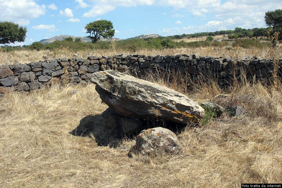La monumentale area archeologica di Furrighesu con la tomba di giganti, il Dolmen ed il nuraghe Furrighesu Da Sindia prendiamo verso ovest la SS129bis'in direzione di Suni. Passato il chilometri 15.6, dopo una curva a gomito, si trova un cancello di legno, dal quale si entra nell’area nella quale, su una collina, si trova la monumentale Area archeologica di Furrighesu. All’interno di questo complesso si trova la tomba di giganti di Furrighesu. Si tratta di una tomba edificata a 424 metri di altezza, costruita con pietre basaltiche. La tomba appartiene alla categoria delle tombe di giganti di struttura isodoma con esedra a filari, una lastra grande che costituisce l’architrave, e con vano funerario che presenta pianta rettangolare e sezione ogivale. Del monumento si conserva il corpo tombale con parte dell’esedra semicircolare e la camera funeraria.