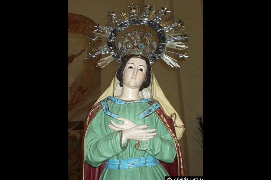 La chiesa di Santa Teresa d’Avila Proseguendo lungo la via Roma, una cinquantina di metri dopo la piazza, prendiamo a destra la via Massimiliano Kolbe che si dirige verso nord est, la seguiamo per una quarantina di metri, ed, alla destra, parte in salita la scalinata, alla sinistra della quale, su un’altura tra la via Massimiliano Kolbe ed il vicolo IV Principessa Maria, si trova la Chiesa di Santa Teresa d’Avila. Questa piccola chiesa è stata edificata nel diciottesimo secolo nella parte bassa dell’abitato. L’edificio, caratterizzato da una estrema semplicità, si sviluppa in un’unica navata scandita da archi a tutto sesto che sorreggono la copertura. Il modesto altare in pietra è sormontato da un’edicola che ospita la statua della Santa. Nella piccola facciata di colore bianco si apre un portone ligneo intarsiato, sormontato da un piccolo oculo ottagonale chiuso da una grata. Alla sommità del tetto a capanna con copertura in tegole, spicca una croce.