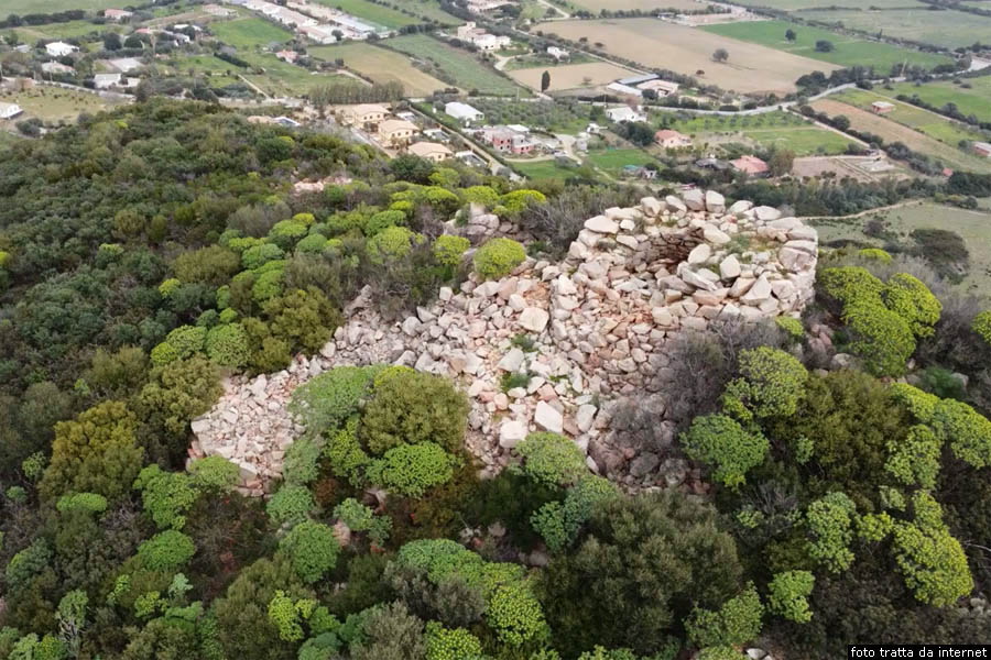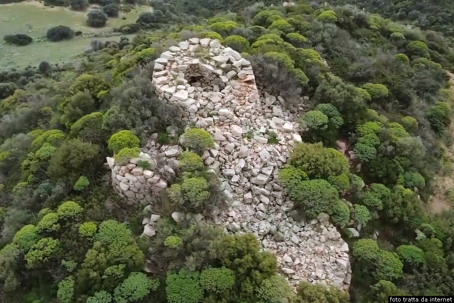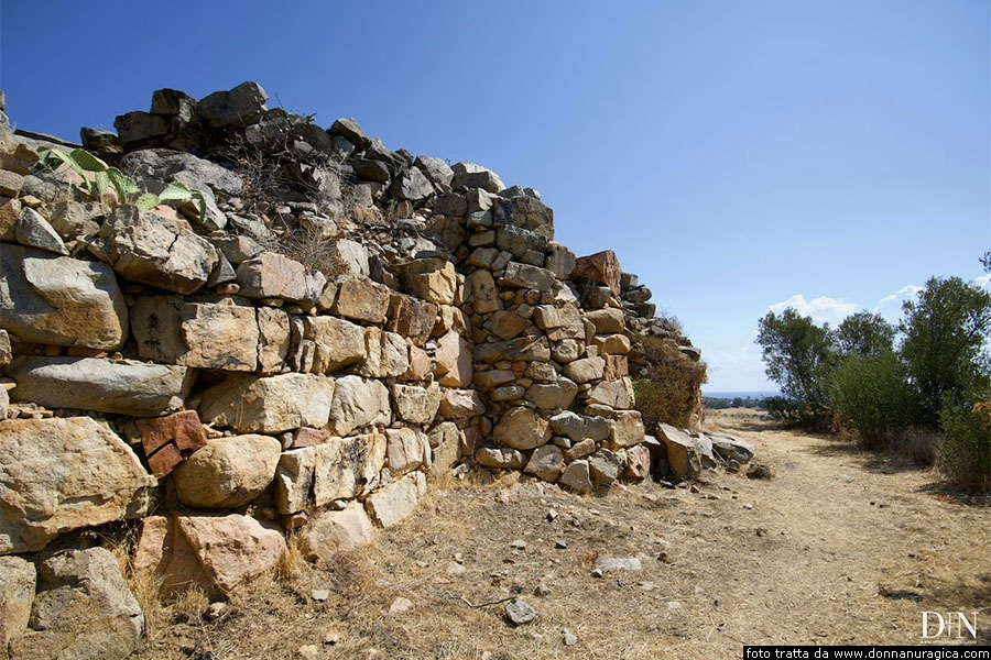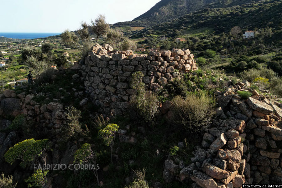 Resti del nuraghe complesso LonguAlla biforcazione, prendiamo verso sud la via Barisoni, che porterà alla Torre di San Giovanni di Sarrala, con brevi deviazioni non segnalate che conducono alle belle spiagge Melisenda, nota anche come spiaggia di Sa Foxi Murdegu, oltre la quale troviamo la spiaggia di Foxi de Lioni, la spiaggia di Su Prettu, per arrivare, infine, alla spiaggia Barisoni ed alla costiera di Porto Santoru. Lungo la via Barisoni, che è la strada costiera verso sud, dopo due chilometri e quattrocento metri, seguendo le indicazioni, prendiamo verso destra la via Sa Mandra, la seguiamo per seicento metri, poi svoltiamo a sinistra e, dopo un centinaio di metri arriviamo a un bivio dove prendiamo leggermente a sinistra in via del Nuraghe Longu. Dopo seicento metri, troviamo sulla destra il sentiero che porta al nuraghe Longu, un nuraghe complesso che si trova all’interno di una proprietà privata in località Su Concali. Il nuraghe è edificato a 126 metri di altezza in metriale indetreminato. Il nuraghe Longu un nuraghe polilobato di tipo a tholos con pianta complessa, formato da una struttura articolata con torri e terrazzamenti, che segue il declivio, la cui torre principale si trova nella parte pił elevata. Attorno alla torre originaria, l’unica ben conservata, è stata in seguito addossata una bastionata dal corso rregolare, adeguantesi ai piani digradanti del declivio, e contenente diverse torricelle. Nonostante restino evidenti tracce di alcune delle torri aggiunte, l’interesse primario viene offerto dalla torre principale, caratteristica per le ridottissime dimensioni avendo un diametro alla base di circa sette metri e mezzo, che danno maggior risalto all’altezza, tutto sommato modesta, di otto metri e mezzo, e all’aspetto slanciato all’edificio. Curioso anche il particolare della celletta superiore, priva di scala d’accesso dal basso, che era raggiungibile probabilmente dallo spalto della bastionata sottostante. La cella del piano terreno presenta una stretta nicchia ed un pertugio fondale comunicante con l’esterno, entrambi rilevati sul pavimento.