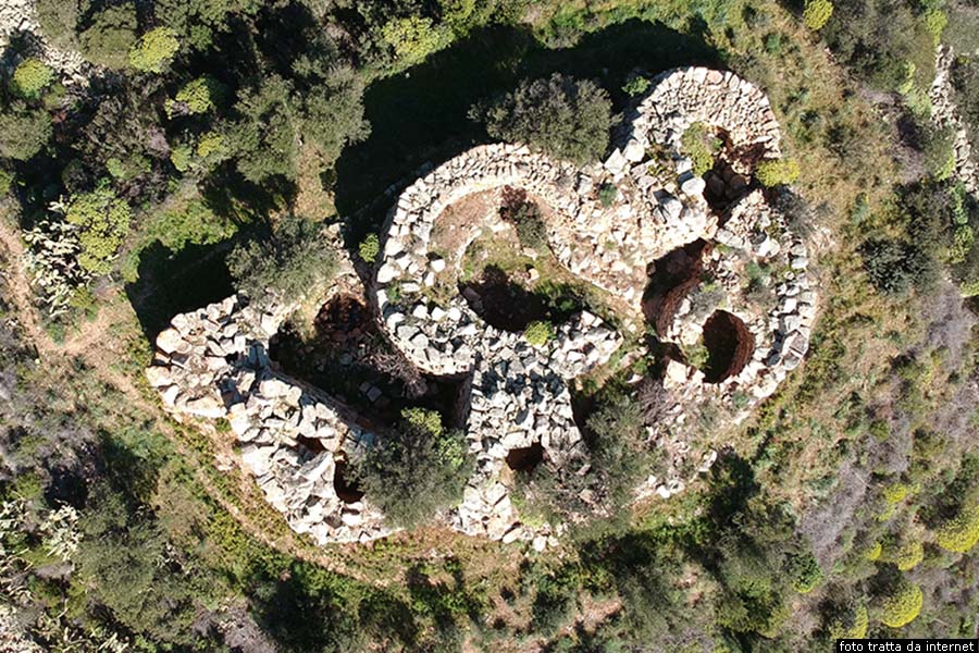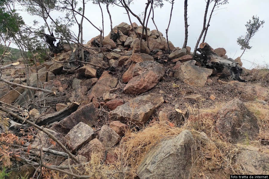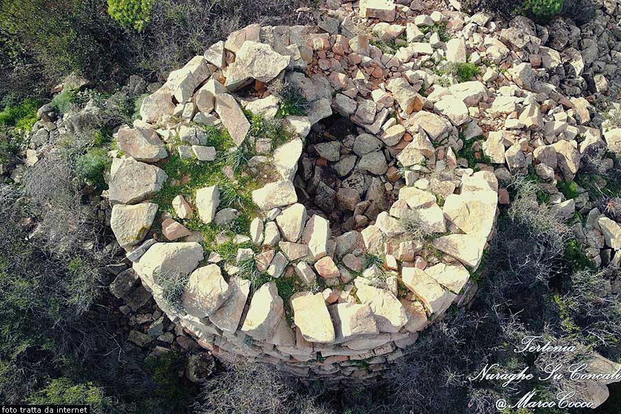 Del corpo aggiunto ben visibile un tratto di bastionata che parte dalla torre dando subito luogo ad una torretta, la cui camera svettata e ripiena di crollo, che prosegue quindi per diversi metri seguendo le asperit del terreno roccioso, a proteggere gli ulteriori ambienti. Anche sulla parte anteriore sinistra della torre si riconosce una torretta, molto interrata e dotata di un vano interno visibile dall’alto ma non praticabile. Resti del nuraghe complesso Su Concali Lungo la via Barisoni, che è la strada costiera verso sud, dopo due chilometri e quattrocento metri, seguendo le indicazioni, prendiamo verso destra la via Sa Mandra, la seguiamo per seicento metri, poi svoltiamo a sinistra e, dopo un centinaio di metri arriviamo a un bivio dove prendiamo leggermente a sinistra, dopo centocinquanta metri svoltiamo a sinistra. Qui, alla distanza di circa quattrocento metri, sulla sommità di un’altura tra grandi boschi, si trovano i resti del nuraghe Su Concali, tra grandi boschi, a circa ottocento metri a sud dal pił conosciuto nuraghe Longu. Si tratta di un nuraghe complesso costruito in blocchi di granito a 134 metri di altezza. Il nuraghe consta di una torre centrale con entrata verso sud est, e due torri addossate una sul lato est e l’altra sul lato nord ovest, con entrate independenti. Secondo il Piano Urbanistico comunale di Tertenia, si dovrebbe, però, trattare di un nuraghe polilobato, con tre o quattro torri aggiunte.