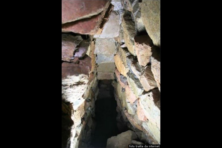 Il Pozzo Sacro composto da un atrio di forma trapezoidale, in un secondo momento modificato in forma rettangolare, aperto a sud ovest, da un vano scala e da due camere sovrapposte e voltate a tholos ancora quasi intatte. Dall’atrio si accede al vano scala di luce trapezoidale con copertura architravata a scala rovesciata, composta da grossi blocchi di porfido locale vagamente squadrati con l’utilizzo di porfido e basalto. Il vano, danneggiato nella sua parte iniziale, contiene una scalinata di cui sono visibili i primi undici gradini in lastre di scisto. Il pozzo raggiunge circa ventiquattro metri di profondità, il vano scala è composto da una quarantina di gradini per accedere nei suoi recessi più profondi, la copertura dello stesso vano a scala rovesciata composta da dodici travi che originariamente dovevano essere forse una ventina. Purtroppo la scala con copertura a scala rovescia crollata, a seguito di un evento alluvionale.