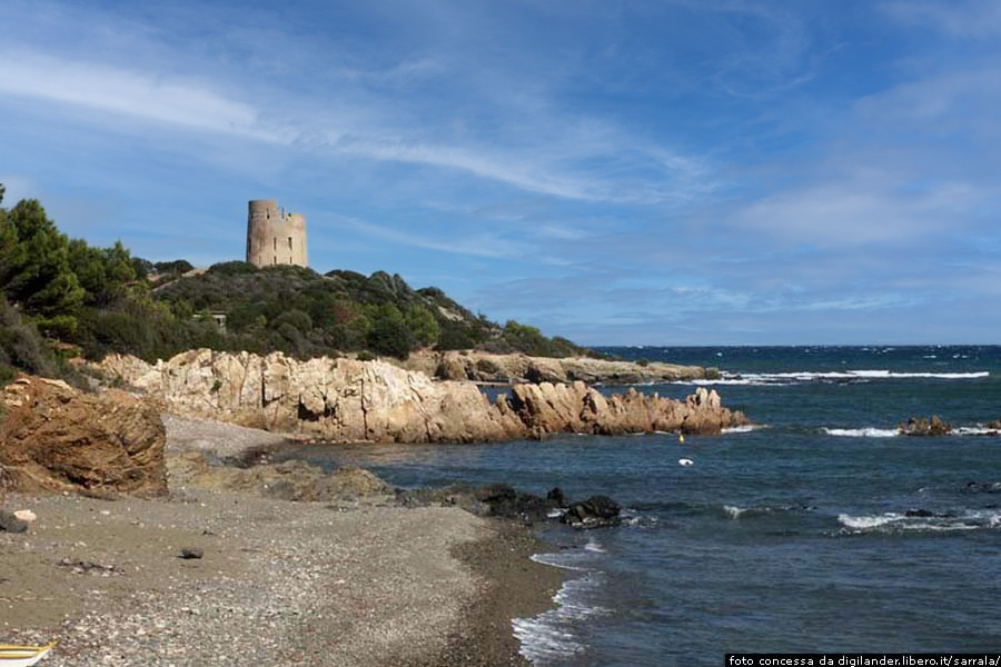 La piccola spiaggia di SarralaSotto la Torre di Sarrala, verso sud, si trova la piccola Caletta della Torre di Sarrala, all’intero della quale possiamo vedere la spiaggia di Sarrala. Sotto la Torre di San Giovanni di Sarrala si trova la piccola spiaggia di Sarrala, nota anche con il nome di spiaggia della Caletta della Torre di Sarrala, che si presenta come una distesa a mezzaluna posta di fianco al promontorio sul quale sorge la torre aragonese di San Giovanni di Sarrala. L’arenile è costituito da sabbia bianco grigia chiara, che si mesta a ciottoli e ciottolini in alcune porzioni dell’arenile. Il mare cristallino ha un fondale basso e sabbioso, e si presenta di un colore che varia tra il celeste ed il verde. La spiaggia, che non è molto affollata in alta stagione, è piuttosto riparata dai venti, con ampi spazi disponibili, salvo che nei pressi dei posteggi e negli accessi.
