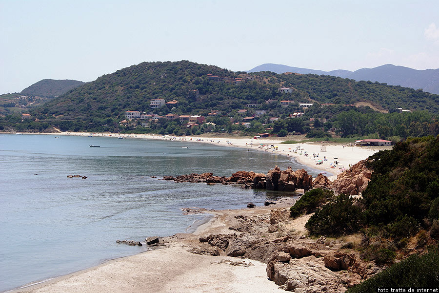Siamo arrivati al termine della costiera meridionale di Tertenia. Dopo la fine della via Barisoni, si prosegue verso sud su una sterrata chiamata la strada per Santoru, che porta in un’isola amministrativa di Loceri, poi in una di Lanusei, ed infine in una di Arzana, passata la quale si entra nel territorio comunale di Villaputzu nella Provincia del Sud Sardegna. Dal centro di Tertenia verso est raggiungiamo la frazione Zinnibiri MannuDal centro di Tertenia la via Sarrala ci aveva portati alla frazione Is Erriolus ed eravamo arrivati alla biforcazione, dove avevamo preso vero destra la via Barisoni, che ci aveva portati verso sud. Alla biforcazione prendiamo, invece, la strada verso est, che, dopo un chilometro e duecento metri, continua sulla la via Aldo Moro. Dopo quattrocentocinquanta metri troviamo una deviazione sulla destra, presa la quale, dopo trecento metri, la strada prima in salita poi in discesa ci porta alla frazione Zinnibiri Mannu (altezza 12 metri, distanza in linea d’aria circa 7.05 chilometri sul livello del mare, abitanti circa 14), dove si trova il grosso insediamento turistico di Sa Foxi Manna. La spiaggia di Sa Foxi MannaLa via Aldo Moro, sia proseguendo con la strada dritta fino alla costa, che deviando a destra per raggiungere l’insediamento turistico, si affaccia sul mare con la spiaggia di Sa Foxi Manna. Qui troviamo la spiaggia di Sa Foxi Manna il cui bianco arenile prende il nome dall’ampia foce del torrente che in essa sbocca. Si tratta di un arenile di grandi dimensioni, costituito da una lunga ed ampia lingua di sabbia dorata chiara fine, circondata da scogli, ed affacciato su un mare verde azzurro, poco profondo, con acqua trasparente e cristallina, ricca di sassolini colorati e di conchiglie, che diviene quasi subito alta. La spiaggia è accessibile da vari punti, con piccoli posteggi e brevi percorsi a piedi, individuabili senza eccessiva difficoltà. Si tratta di una attrezzata, in essa vi è la disponibilità di bar, ristoranti, negozi e servizi vari. La spiaggia non è mai affollata, neanche in alta stagione, salvo che nei pressi dei posteggi e nei punti di accesso.