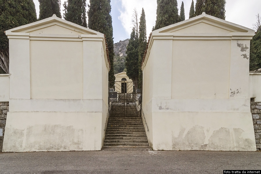 Il Cimitero di UlassaiDal Municipio di Ulassai, proseguiamo verso est seguendo il corso Vittorio Emanuele II, che uscirà dall’abitato con il nome di SP11 in direzione nord, verso Osini. Percorsi circa duecentocinquanta metri dal Municipio, vediamo alle destra della strada il cartello segnaletico che indica l’uscita dall’abitato. Dopo appena un’altra cinquantina di metri, alla sinistra della strada parte la parallela in salita che fiancheggia il muro anteriore del Cimitero Comunale di Ulassai e che, in un’altra cinquantina di metri, ci porta di fronte al suo ingresso.