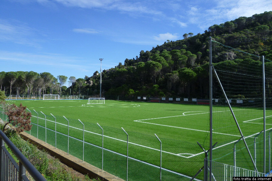 Il Campo da Calcetto di UlassaiIl lato sud della piazza Barigau si affaccia sulla via Santa Barbara, che parte dall’angolo destro della chiesa di San Sebastiano, dove è arrivata, costeggiando la chiesa, la via Dante Alighieri. Seguendo il viale Santa Barbara, proseguiamo per poco più di cento metri costeggiando la piazza Barigau, poi svoltiamo a sinistra e vediamo, alla destra della strada, passato il parco Giochi, l’ingresso del Campo da Calcetto di Ulassai.