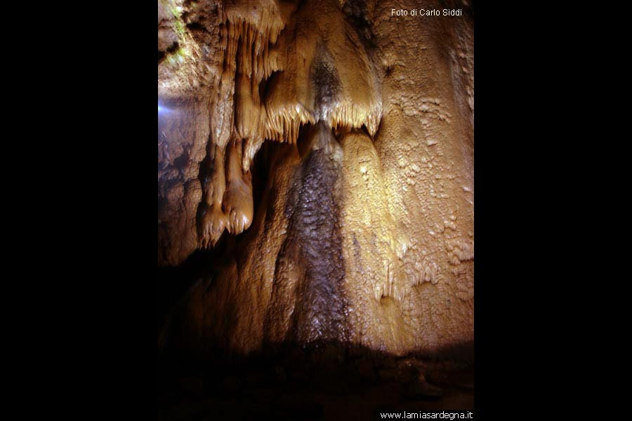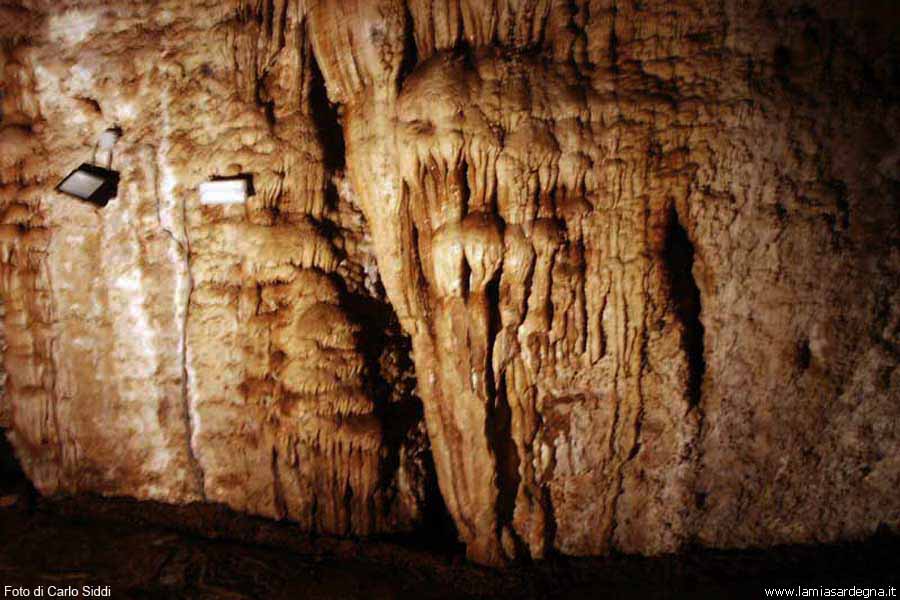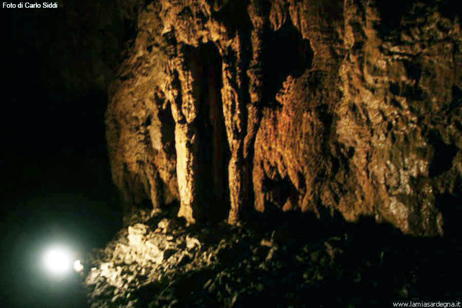 La grotta di Su MarmuriPoco sopra la cascata, alla base dei tacchi, si apre la Grotta di Su Marmuri, ossia del sussurro, che è la più grande dell’Isola, lunga quasi un chilometro e con un’altezza che varia tra i trenta ed i cinquanta metri. La temperatura interna non si allontana quasi mai dai 10 C.