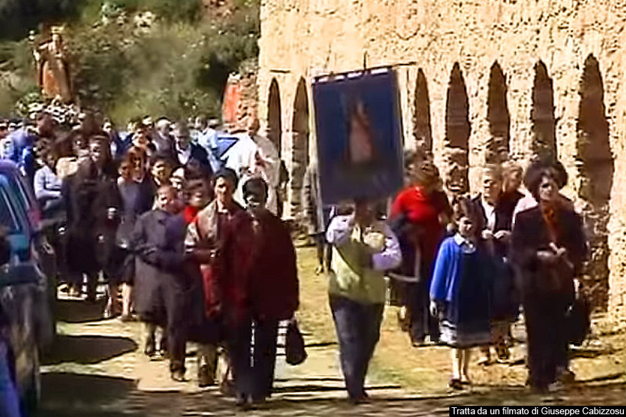 A Ulassai, presso questa chiesa, la seconda domenica dopo Pasqua si celebra la Festa di Sant’Antioco Martire, che è il Santo Patrono del paese. Oltre alla messa e alla Processione in onore del Santo con il suo simulacro, e con la partecipazione di gruppi folcloristici, cavalieri e launeddas, viene organizzata dal gruppo dei Cacciatori Ulassesi la Sagra del Cinghiale, con degustazione di carne di cinghiale e prodotti tipici. I più anziani del paese ricevono direttamente a casa il pranzo offerto dai cacciatori, mentre la degustazione dei prodotti tipici e della carne di cinghiale avviene nella piazza Barigau. Ad Ulassai il giorno di astensione dal lavoro è il lunedì successivo alla celebrazione della festa. Il lavatoio Comunale di UlassaiPercorsa per una cinquantina di metri verso nord la via Bosa, prima che la strada compia un’ampia curva a sinistra, si trova sulla destra una scalinata che porta alla sovrastante via Santa Croce. A questo punto, in auto, avremmo potuto arrivare seguendo tutta la via Bosa verso ovest, dopo quattrocento metri prendendo a destra la strada che, in una sessantina di metri, porta alla via Santa Croce, che si dirige verso est, e ci porta in quattrocentocinquanta metri nello stesso punto.  Qui, verso sud, di fronte all’arrivo della scalinata, si vede la facciata del Lavatoio Comunale uno dei simboli del paese di Ulassai, edificato tra il 1903 e il 1905 per volontà del sindaco Antonio Cannas, fratello del magistrato Francesco Cannas, su progetto di Ernesto Ravot, ingegnere di Cagliari, e che oggi è uno degli edifici più importanti del Museo all’aperto di Maria Lai. La costruzione è a forma di parallelepipedo, conclusa da una cornice aggettante che la circonda completamente. Nella facciata principale sono collocate tre aperture ad arco, dalle cornici in pietra calcarea della zona, con quella centrale a forma di finestra. La parte alta del cornicione è sormontata da un frontone a forma tonda privo di decorazioni. Nel lato destro, rivolto verso est, un arco suggell’antica fontana principale del paese, ossia Sa Funtana e S’Era, ossia la fontana dell’edera, conosciuta anche come Funtana e Susu, dalla quale esce acqua freschissima tutti i giorni dell’anno, che a memoria d’uomo non si è mai seccata, la cui acqua in eccesso viene incanalata per l’irrigazione degli orti sottostanti. Nel lato sinistro, rivolto verso ovest, un arco simile suggella le antiche vasche per il lavaggio del grano.