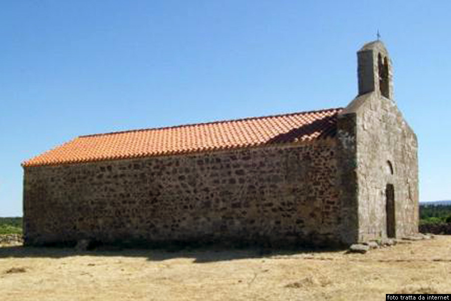 Nelle vicinanze del complesso nuragico di Santa Lucia si trovano l’insediamento abitativo nuragico, che è stato frequentato ancora in età romana, e a breve dostanza si trova anche la tomba di giganti di Motrox ’e Bois che descriveremopiù avanti. La chiesa di Santa Lucia Passato il complesso nuragico di Santa Lucia, proseguiamo lungo la strada che ci ha portati fino ad esso e, centocinquanta emtri più avanti, vediamo alla destra della strada, sulle pendici della collinetta di Santa Lucia, la piccola Chiesa campestre di Santa Lucia. È un semplice edificio a navata unica, risalente ad epoca vandalica. In assenza di notizie documentarie medievali riguardanti la struttura, solo una lettura formale dell’edificio ha consentito di datarne l’impianto tra la fine del dodicesimo secolo e la metà di quello successivo. Di fronte vi sono i ruderi di alcune Cumbessias. Il luogo di culto, posto al centro di un’area recintata da un muretto a secco, ha la facciata a spioventi, realizzata con conci in vulcanite di media pezzatura, che ospita un portale con stipiti non monolitici, mensole e architrave, sul quale poggiano l’arco di scarico e la lunetta a tutto sesto. Nella mensola sinistra si riconosce una protome antropomorfa, mentre quella destra è di difficile lettura a causa del pessimo stato di conservazione. La facciata culmina con un campanile a vela in cui le due luci della centina semicircolare sono separate da una colonnina con capitello a stampella.